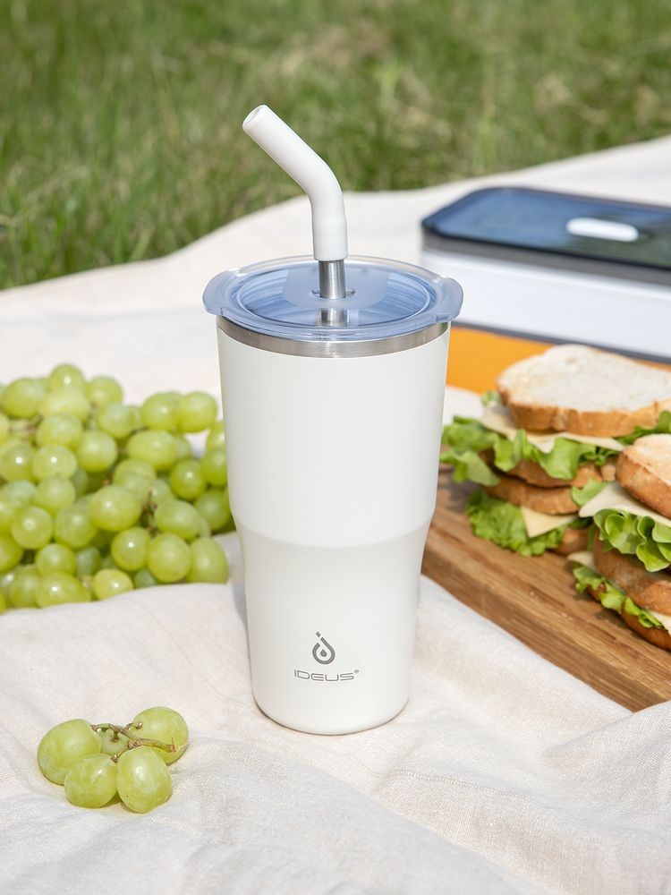 2 крышки в комплекте: одна на 100% герметичная с механизмом блокировки отверстия для питья, вторая — с отверстием для трубочки