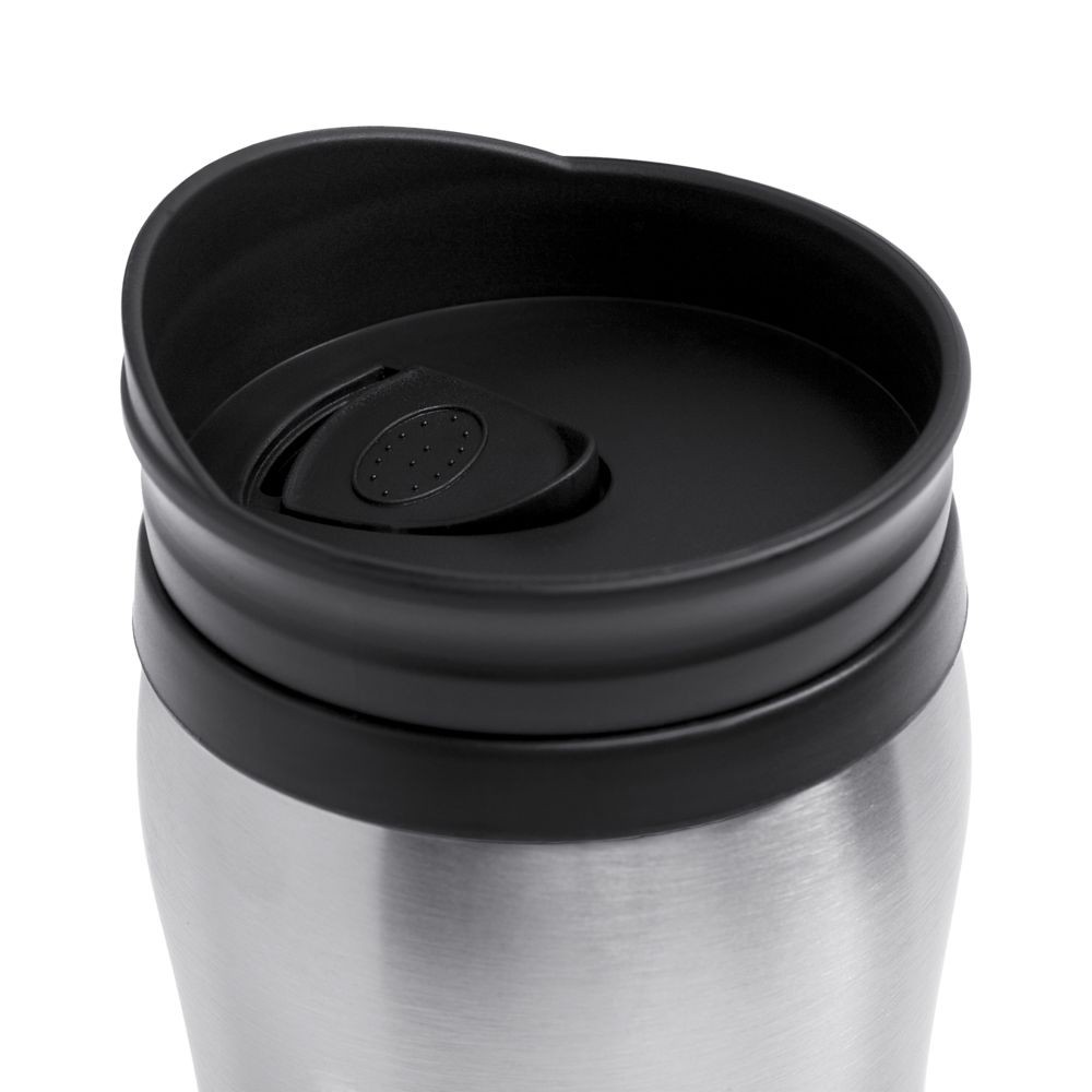 Двухслойная конструкция из пластика внутри и нержавеющей стали снаружи сохраняет напитки горячими в течение 1 часа, холодными — 2 часов.
