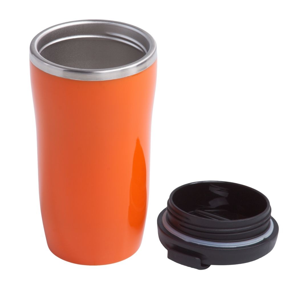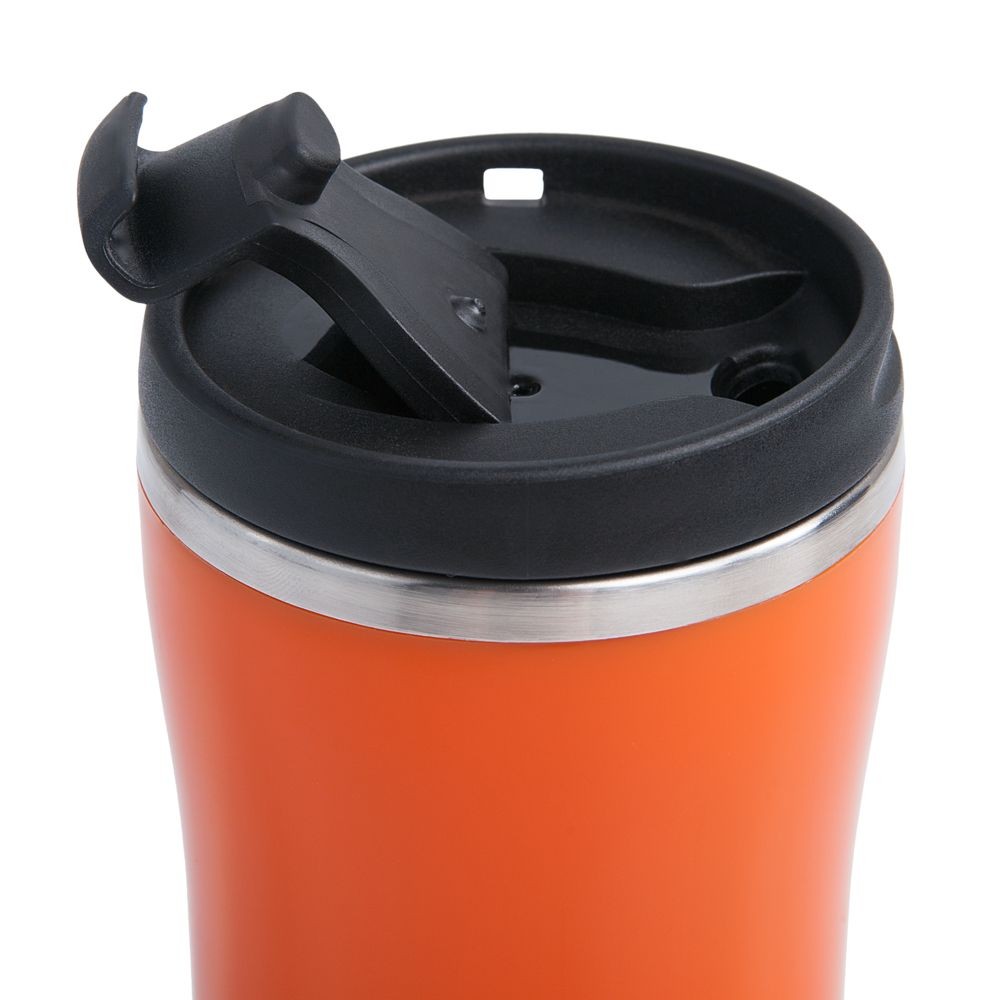 Двухслойная конструкция из пластика снаружи и пищевой нержавеющей стали внутри. Герметичная завинчивающаяся крышка с откидным клапаном для питья. В отверстие в крышке можно вставить шнурок для удобного ношения стакана на руке. Шнурок в комплект не входит.