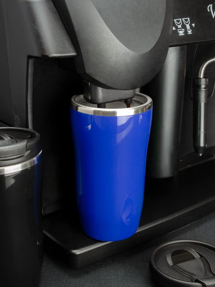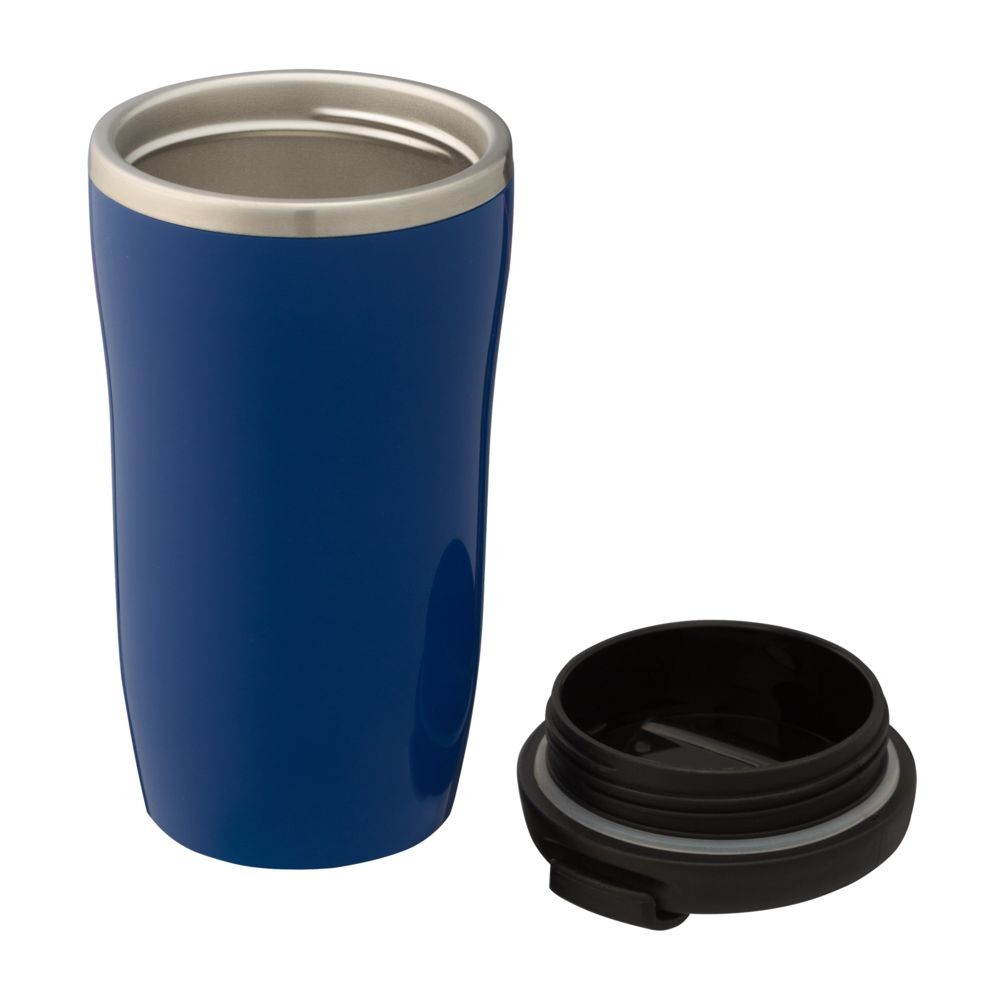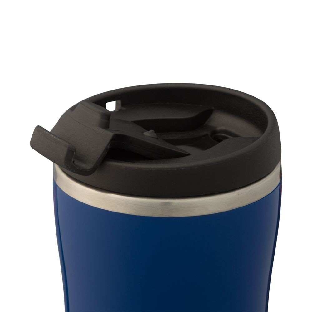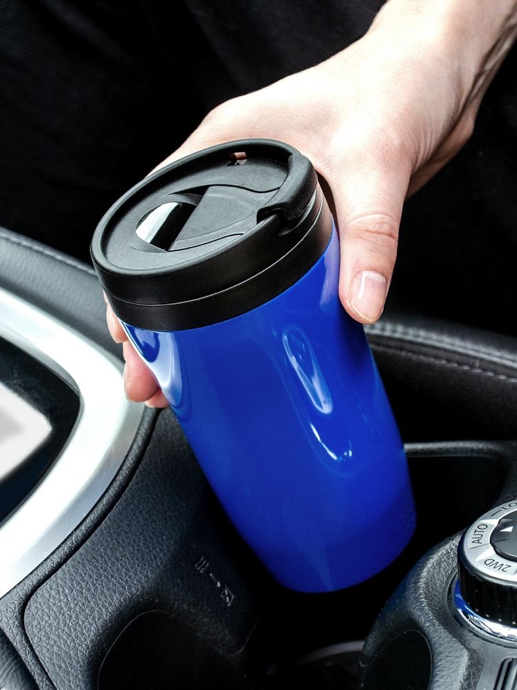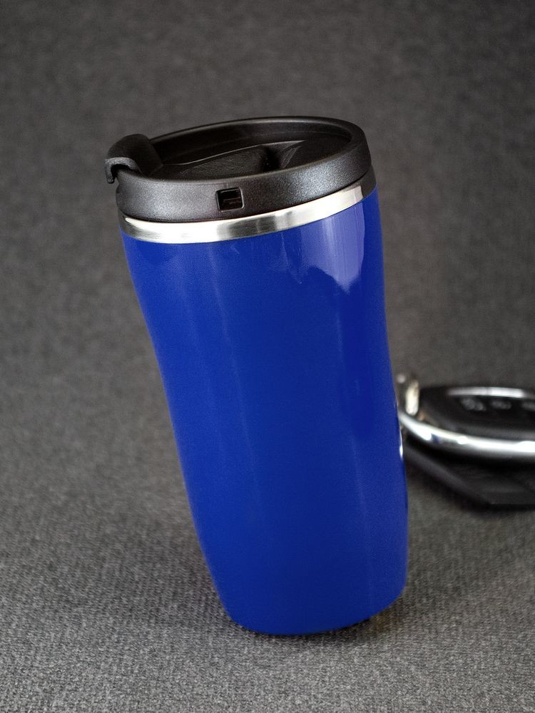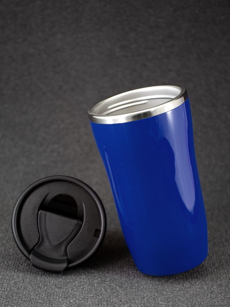 Двухслойная конструкция из пластика снаружи и пищевой нержавеющей стали внутри. Герметичная завинчивающаяся крышка с откидным клапаном для питья. В отверстие в крышке можно вставить шнурок для удобного ношения стакана на руке. Шнурок в комплект не входит.