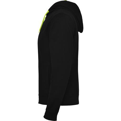Толстовка из футера без начеса с деталями неонового цвета. Молния по центру с контрастным бегунком неонового цвета. Капюшон с контрастной неоновой подкладкой из микроперфорированного полиэстера, а также шнурком и металлическими люверсами. Длинные рукава.