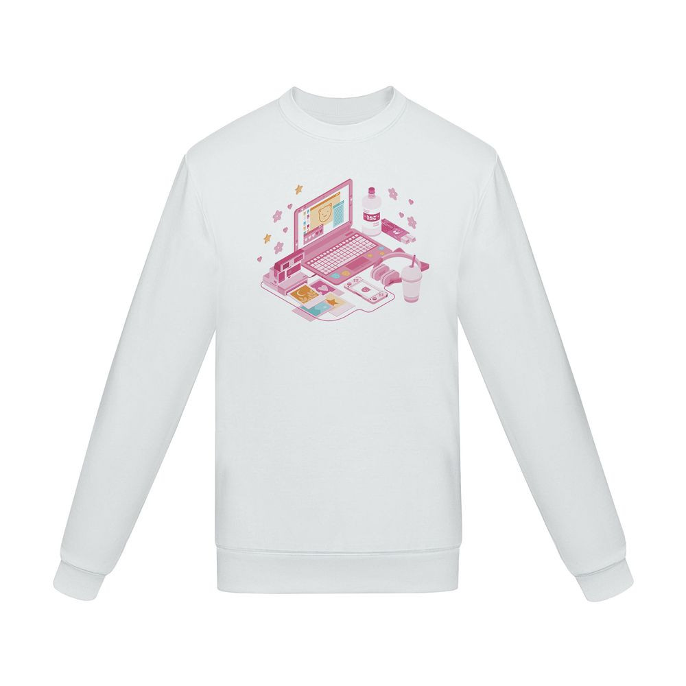 Толстовка унисекс с втачными рукавом. Изнанка: мольтон с начесом. Укрепляющая тесьма по вороту, манжеты, ворот и низ толстовки связаны резинкой с эластаном.