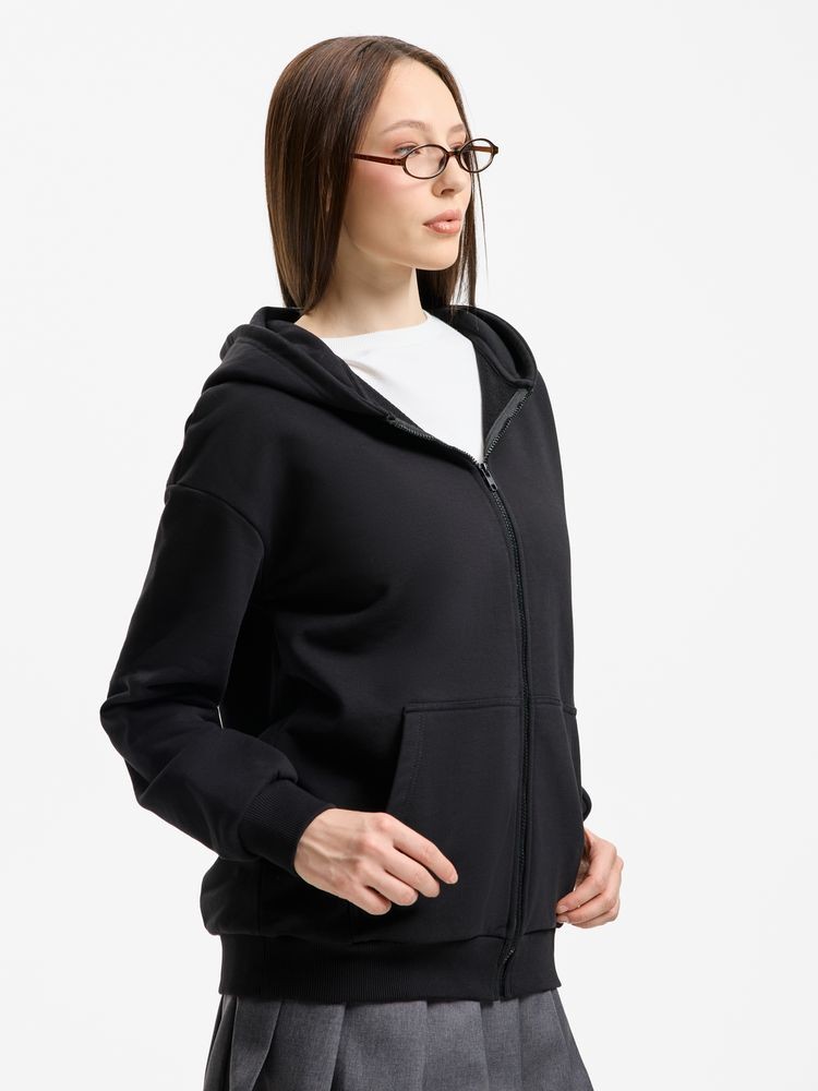 Молния в цвет изделия Капюшон с подкладкой из основного полотна Спущенная линия плеча Манжеты и низ изделия выполнены резинкой 2х2 Два передних кармана Внутренняя сторона без начеса Допускаются отклонения в 5% от указанных параметров по размеру и цвету