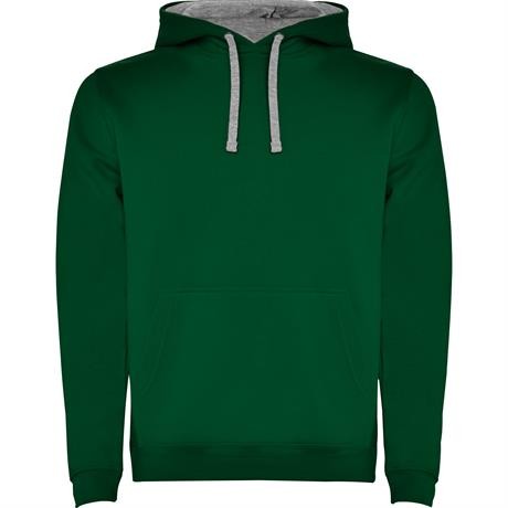 Однотонная или двухцветная толстовка с двухслойным капюшоном, регулируемым шнурком и карманом-кенгуру. Манжеты и нижний край выполнены из эластичной резинки 1x1.