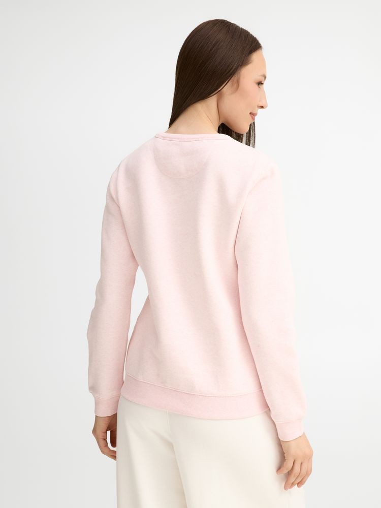 Женская утепленная толстовка с круглым вырезом и декоративной треугольной вставкой. Лейбл производителя в боковом шве изнутри, в шве горловины — только бирка с размером, что позволяет вам нанести свой логотип.