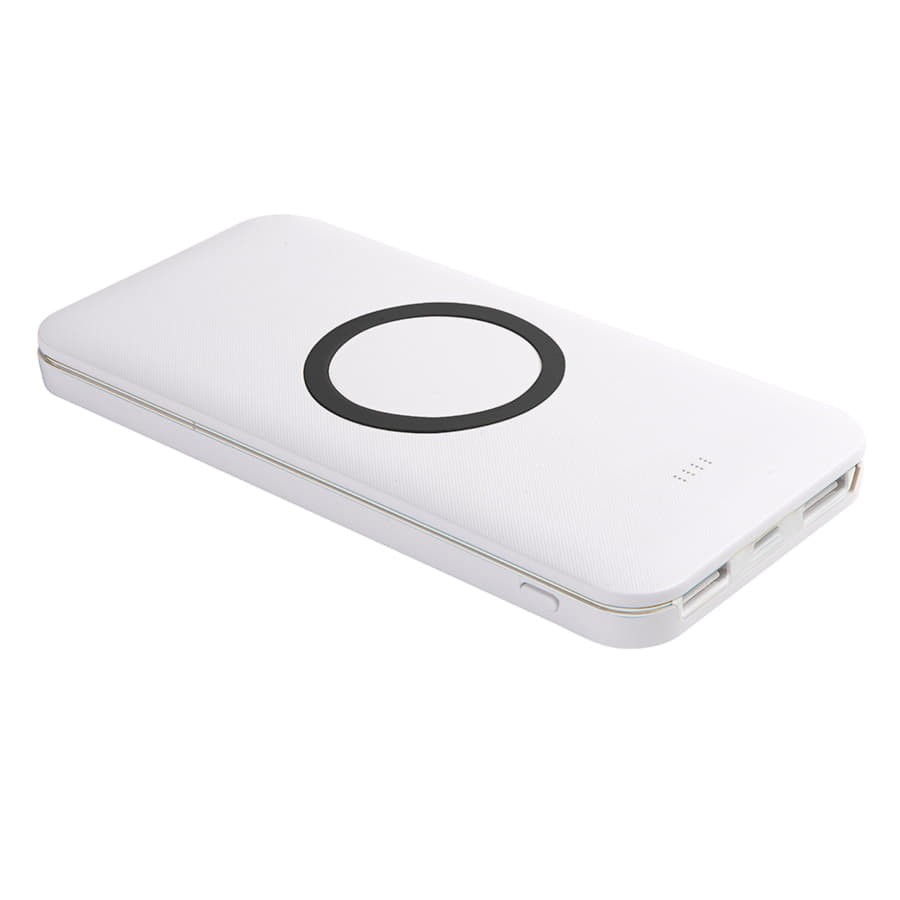 Универсальный аккумулятор с функцией беспроводной зарядки SATURN,белый с голубым,15х7,3х1,2с, Белый