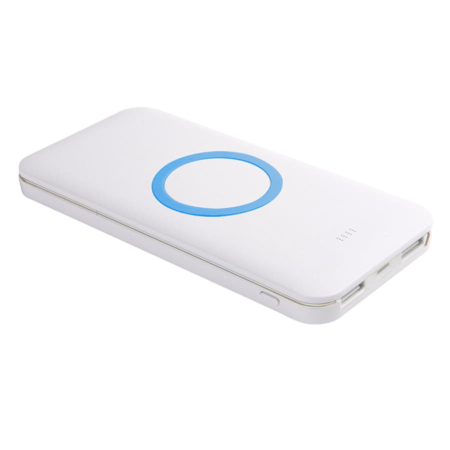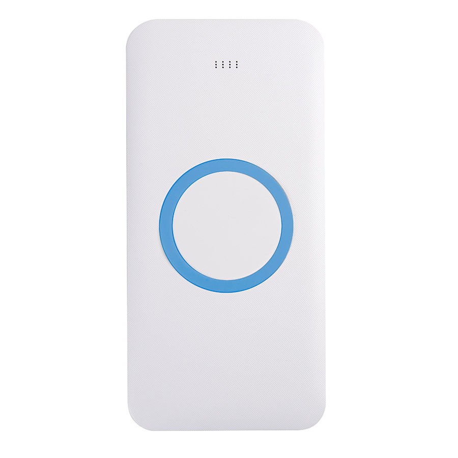 Универсальный аккумулятор с функцией беспроводной зарядки SATURN,белый с голубым,15х7,3х1,2с, белый, голубой