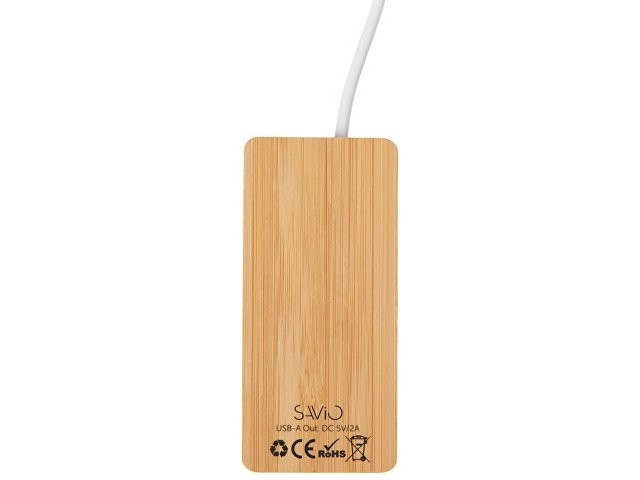 Универсальный USB-хаб, созданный для тех, кто ценит порядок, экологичность и стиль в рабочем пространстве. Корпус устройства изготовлен из натурального бамбука и переработанного ABS-пластика — это не только подчеркивает вашу заботу об окружающей среде, но и придаёт хабу теплый, премиальный вид, вписывающийся в любой интерьер — от домашнего офиса до коворкинга. Устройство оснащено тремя портами USB-A и одним USB-C, обеспечивая подключение всех необходимых гаджетов одновременно. А встроенная белая подсветка с возможностью нанесения логотипа — это не просто функция, а элегантный акцент: ваш бренд или инициалы мягко светятся, привлекая внимание и добавляя индивидуальности вашему workspace. - Экологичный дизайн — корпус из натурального бамбука и переработанного пластика - 4 порта в одном устройстве — 3×USB-A + 1×USB-C для максимальной совместимости - Логотип с подсветкой — ваш бренд мягко светится, создавая запоминающийся визуальный эффект - Стильный аксессуар для рабочего стола — подчеркните индивидуальность и экосознательность - Идеальный корпоративный подарок — полезный, красивый и нестандартный способ выделиться