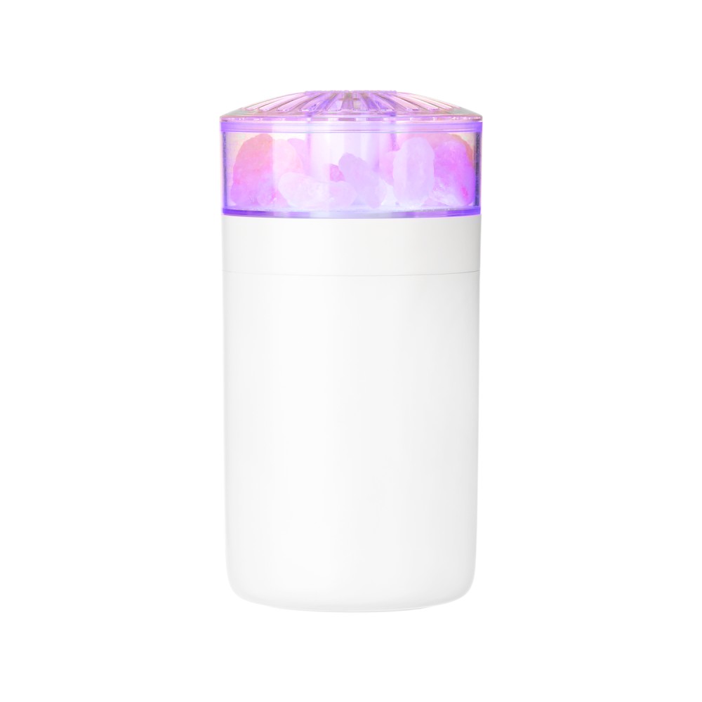 Мини-увлажнитель воздуха с соляными кристаллами и функцией радужной LED-подсветки Технология нано-распыления эффективно снижает сухость и статическое электричество в воздухе. Кристаллы гималайской соли при нагревании LED-подсветкой ионизируют и очищают воздух. Устройство можно использовать как аромадиффузор, добавив на поверхность кристаллов пару капель эфирного масла. Специальное покрытие корпуса OIL PAINT обеспечивает лучшие визуальные и тактильные характеристики пластика. Подходит для использования в помещении и в автомобиле. Объем резервуара воды – 250 мл.