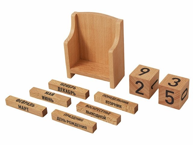 Стильный и функциональный календарь из натурального бука станет элегантным украшением рабочего стола или интерьера. Помимо стандартных дат календарь включает 12 «поводов» — дни недели и настроения, которые можно отмечать каждый день, создавая настроение и отмечая особые моменты.