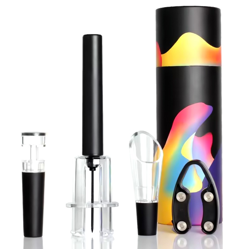 Винный набор Winetube в яркой подарочной упаковке станет идеальным подарком для каждого винного энтузиаста. Winetube упакован в стильную подарочную упаковку, которую приятно дарит и в ней удобно хранить ваш набор. С ним можно увлечь пробку из любой винной бутылки за считанные секунды. В состав набора входит: — нож для удаления фольги; — пневмоштопор (длинна 190 мм, ширина 40 мм, длинна иглы — 58 мм); — аэратор для улучшения вкусовых качеств вина; — вакуумная пробка для удержания напитка. Наслаждайтесь вином без лишних хлопот!