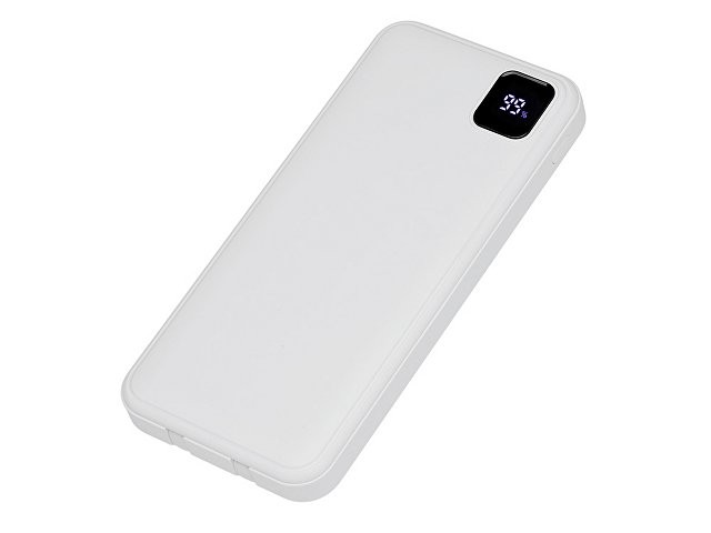 Удобный внешний аккумулятор с встроенными кабелями USB-C и Lightning — ваш надежный партнер в путешествиях, на встречах и в повседневных задачах. Цифровой дисплей в реальном времени показывает точный остаток заряда, а компактные габариты делают его таким же удобным, как смартфон. Прочный корпус из переработанного АБС-пластика и емкость 10000 мАч обеспечивают долгую работу даже при интенсивном использовании. Идеальный выбор для тех, кто ценит комфорт и функциональность в одном устройстве. Продуманная упаковка: для открытия просто потяните за язычок, и появится гаджет с нанесением. - Встроенные кабели USB-C и Lightning — больше не нужно искать провода - Цифровой дисплей с точным отображением заряда - Удобная зона под нанесение логотипа - Компактный размер, сопоставимый с телефоном — легко помещается в карман, сумку или портфель. - Упаковка с удобным и быстрым открытием