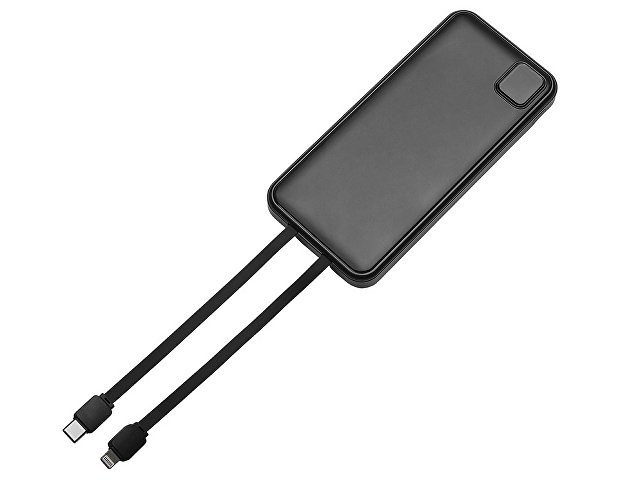 Удобный внешний аккумулятор с встроенными кабелями USB-C и Lightning — ваш надежный партнер в путешествиях, на встречах и в повседневных задачах. Цифровой дисплей в реальном времени показывает точный остаток заряда, а компактные габариты делают его таким же удобным, как смартфон. Прочный корпус из переработанного АБС-пластика и емкость 10000 мАч обеспечивают долгую работу даже при интенсивном использовании. Идеальный выбор для тех, кто ценит комфорт и функциональность в одном устройстве. Продуманная упаковка: для открытия просто потяните за язычок, и появится гаджет с нанесением. - Встроенные кабели USB-C и Lightning — больше не нужно искать провода - Цифровой дисплей с точным отображением заряда - Удобная зона под нанесение логотипа - Компактный размер, сопоставимый с телефоном — легко помещается в карман, сумку или портфель. - Упаковка с удобным и быстрым открытием