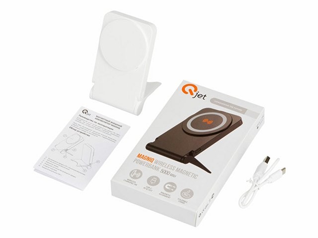 Представляем магнитный пауэрбанк «MagnIQ» на 5 000 мАч с удобной складной подставкой. Это идеальное решение для тех, кто ценит удобство и стиль. Внешний аккумулятор крепится к смартфону за счет встроенных магнитов (подходит для iPhone от 12 версии или для любого смартфона со специальным металлическим кольцом на задней крышке). Пауэрбанк оснащён встроенной складной подставкой, которая обеспечивает комфортное использование смартфона одной рукой как горизонтально, так и вертикально. Больше не нужно беспокоиться о том, что ваш телефон упадет или будет заряжаться лёжа на боку. Просто установите его на подставку и продолжайте использовать устройство без прерывания процесса зарядки. В комплекте зарядный кабель USB-A - USB-C для зарядки пауэрбанка. Кабель для зарядки других устройств от повербанка в комплект не входит. Большое пространство для нанесения логотипов -на фронтальной панели, на задней крышке, на подставке.