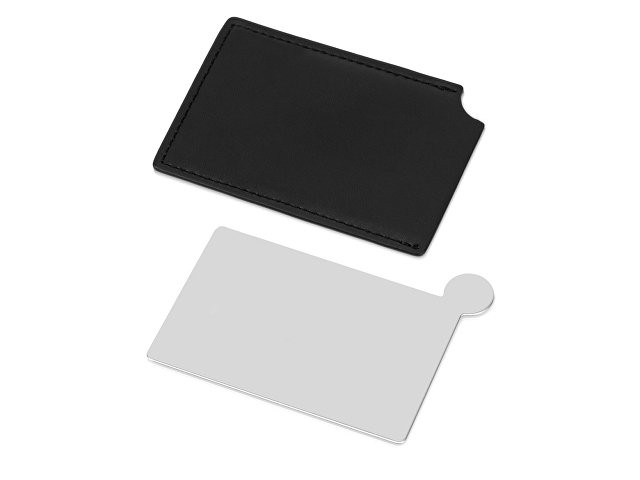Оригинальное зеркало в чехле из искусственной кожи толщиной всего 3 мм легко поместится не только в сумке, но и в кармане или небольшом органайзере. Выполнено из металлического сплава и отполировано. Такое зеркало никогда не разобьётся. Надпись или логотип можно нанести как на чехле, так и на самом зеркале.