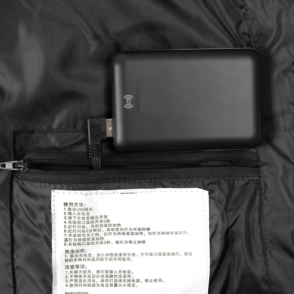 1. Подключите внешний аккумулятор к кабелю во внутреннем кармане куртки.