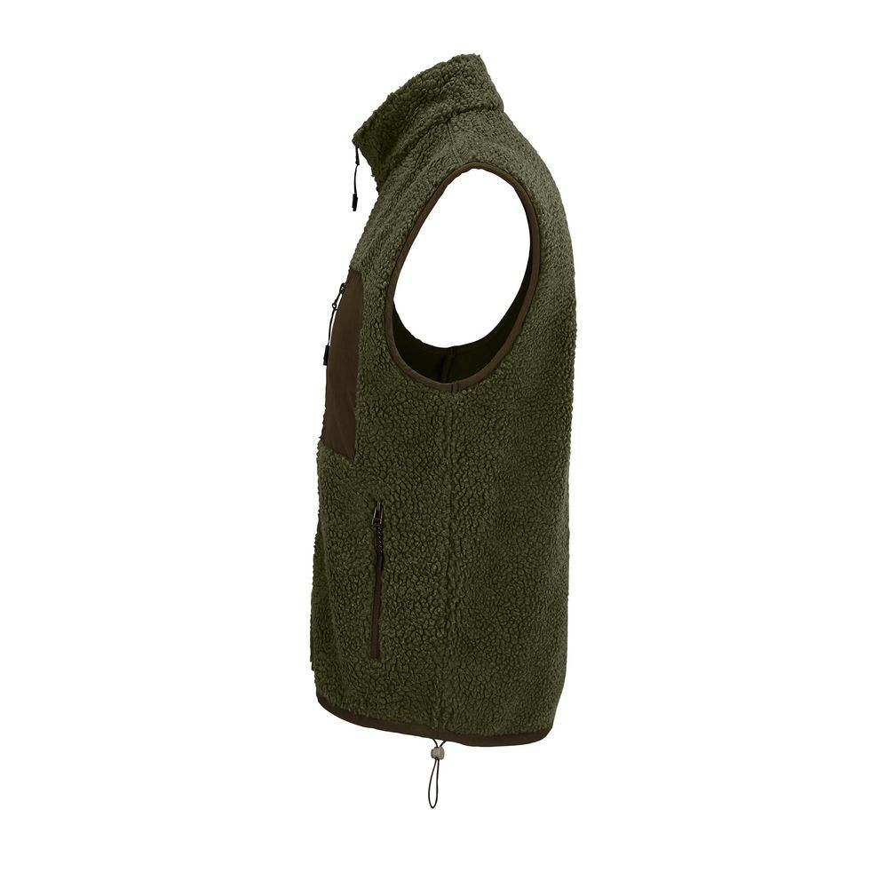 Жилет унисекс из фактурной искусственной шерпы с гладкой отделкой из таслана.