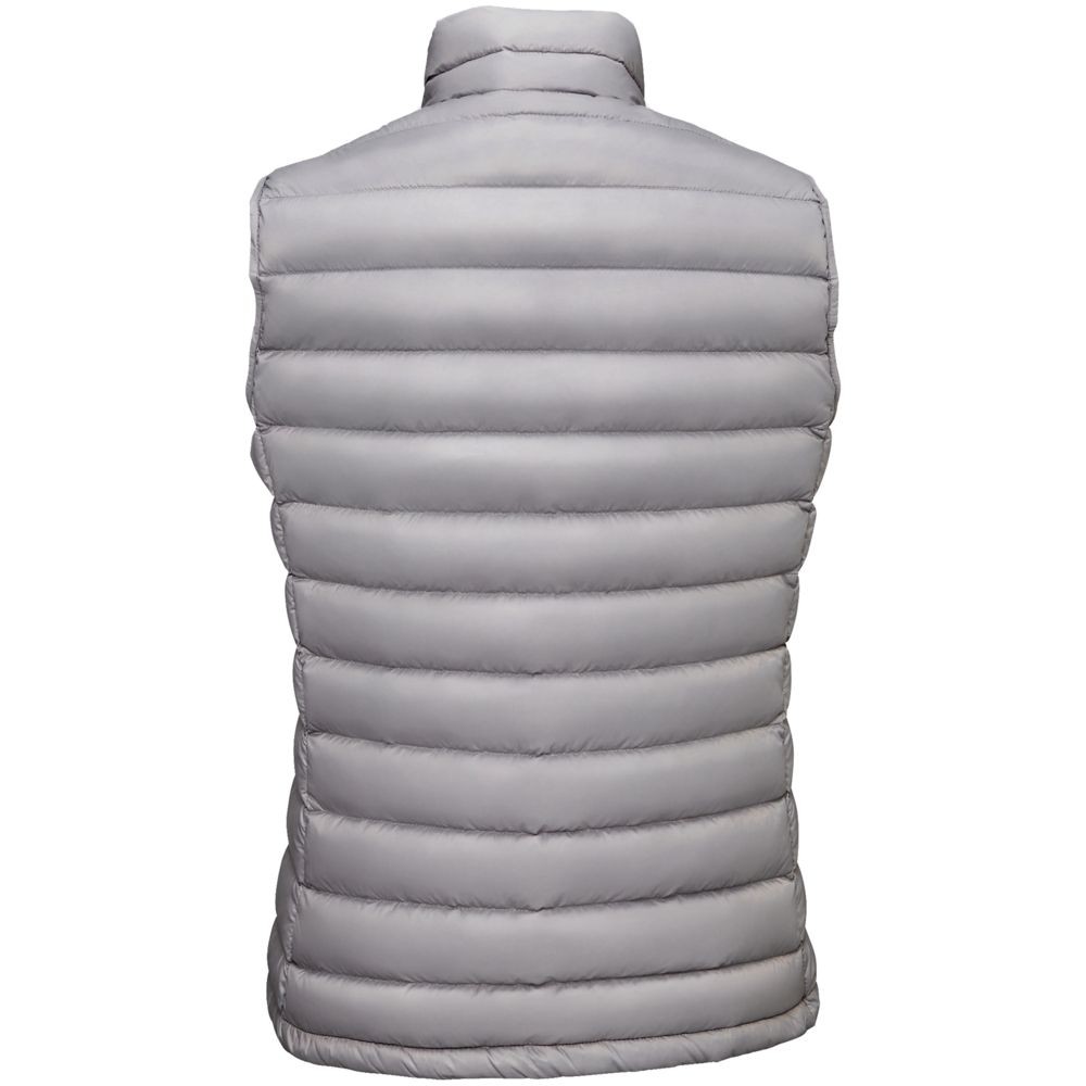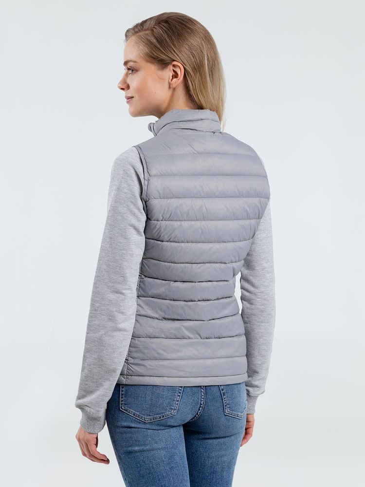 Женский стеганый жилет облегающего кроя на молнии с воротником-стойкой.