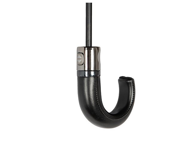 Зонт-автомат для деловых людей отличается стильным лаконичным дизайном с отделкой из искусственной кожи. Благодаря спицам из стекловолокна сможет выдержать порывы сильного ветра. На широкий фиксирующий ремешок можно нанести ваш логотип.
