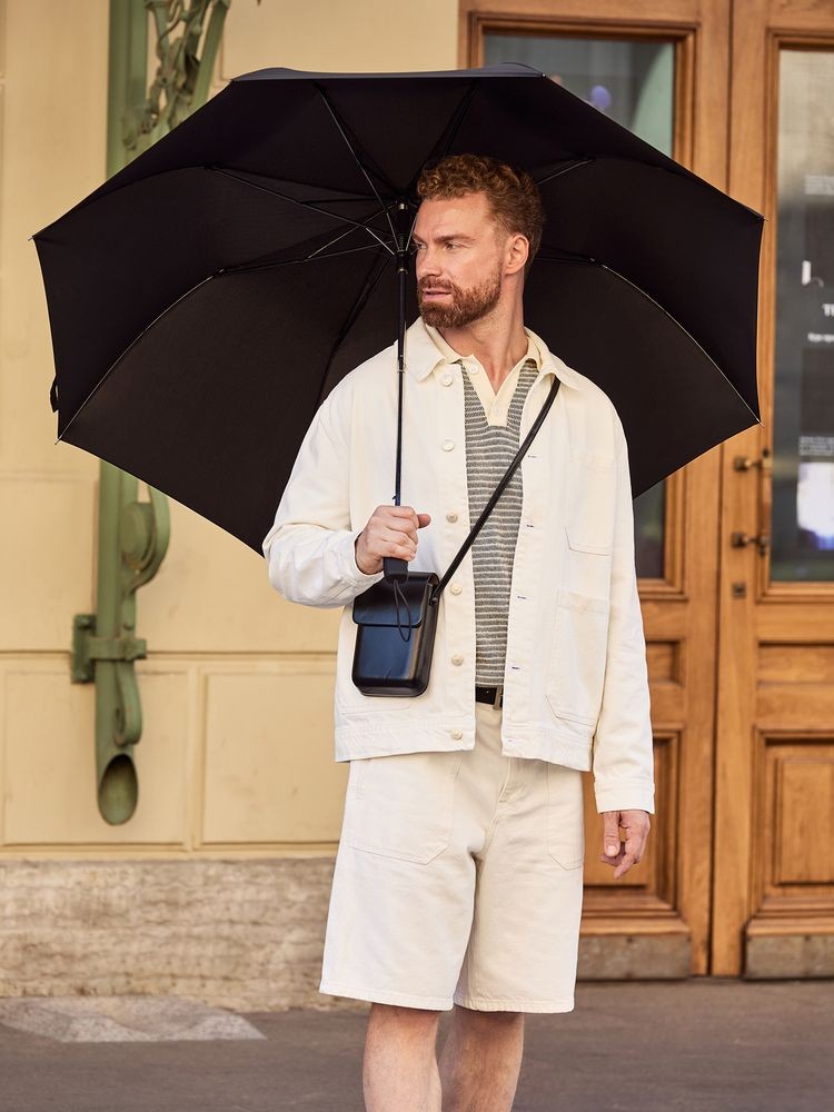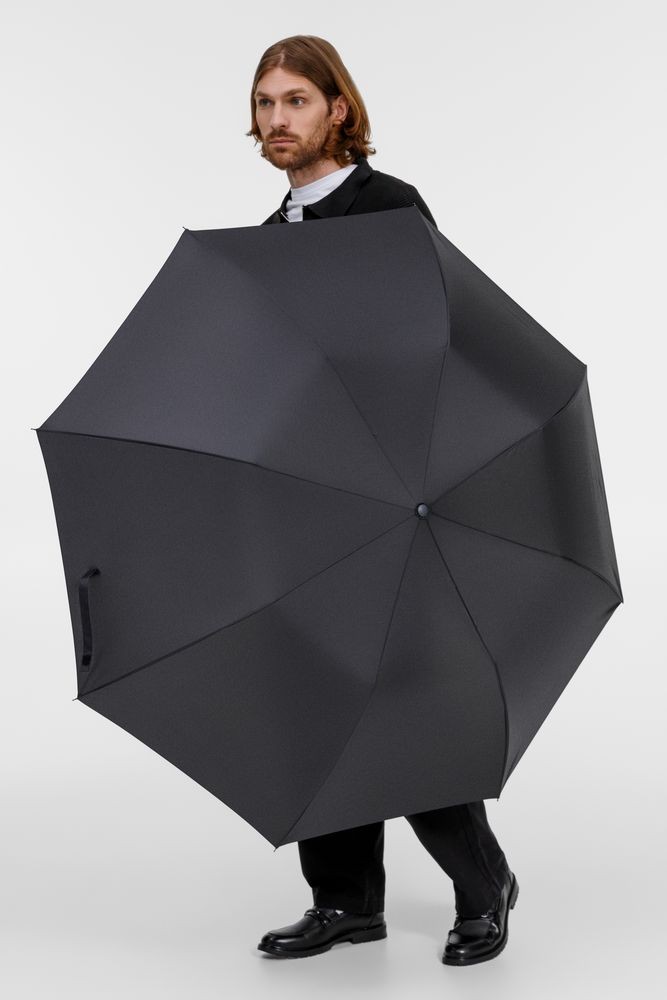 Складной зонт Big Arc привлекает внимание своим необычным дизайном и большим куполом, под которым от дождя можно укрыться даже вдвоем! Два сложения купола, вместо привычных трех, делают зонт солиднее, а конструкцию рамы прочнее. Эргономичная ручка удобно лежит в руке и позволяет крепко держать зонт даже под внезапными порывами ветра.
