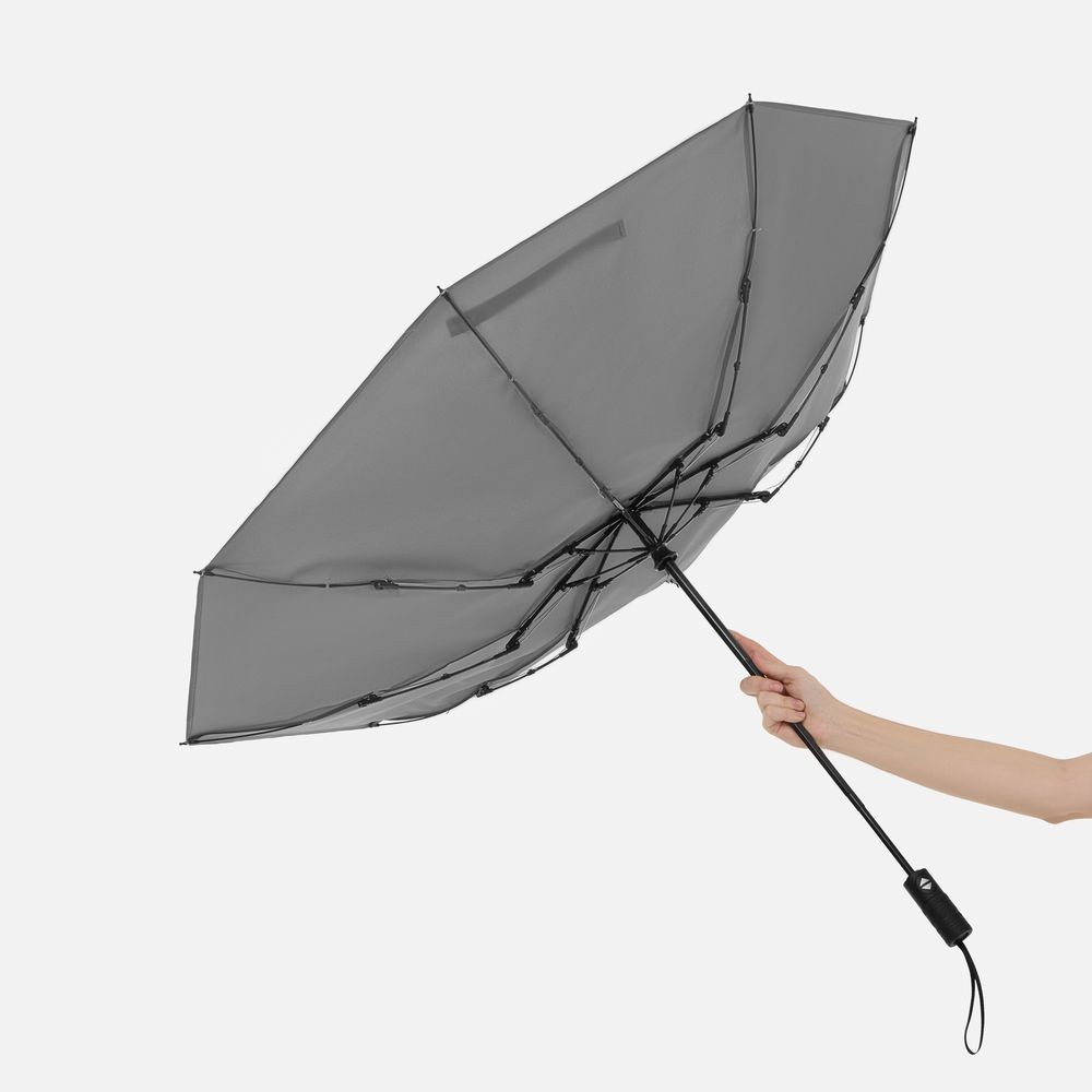 Зонт-автомат, 3 сложения, 8 спиц Прочный каркас из стекловолокна Система антиветер Рисунок протектора шин на ручке Купол со светоотражающим кантом Поставляется в чехле