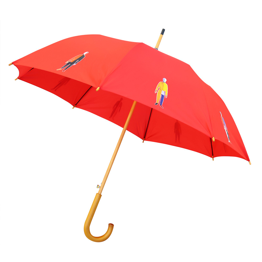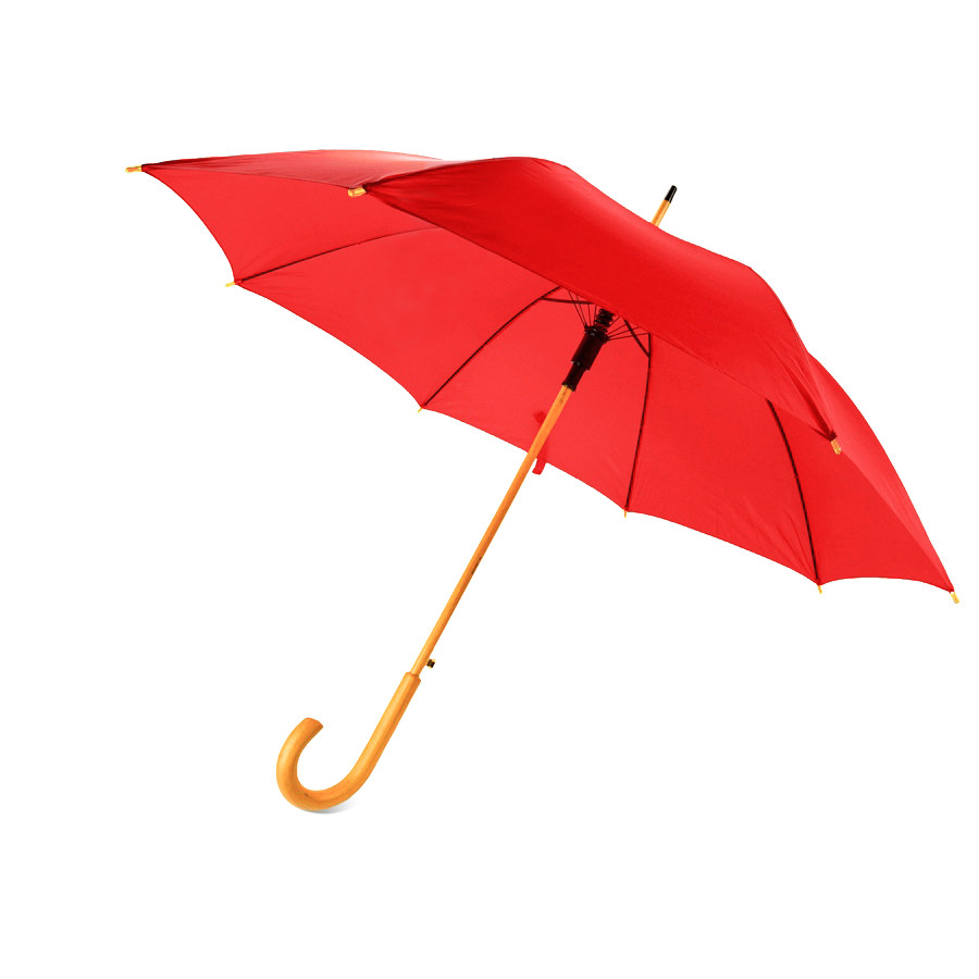 Полуавтоматический зонт, деревянная ручка и рама. Выполнен из качественных материалов. Поставляется без чехла. Цвет, максимально приближенный к пантону 186С