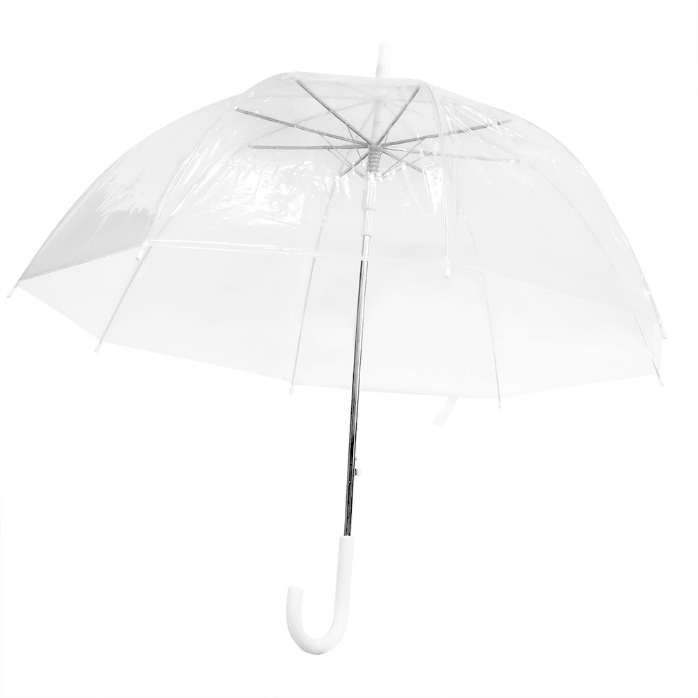 Зонт-трость с прозрачным куполом. Каркас выполнен из прочного металла, надежные спицы из стекловолокна. Поставляется без чехла.