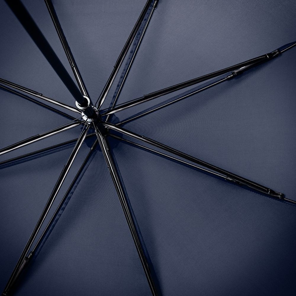 Зонт снабжен системой защиты от ветра. Если при экстремальных порывах ветра купол выгибается, то механизм пружинит, не давая спицам погнуться или сломаться.
