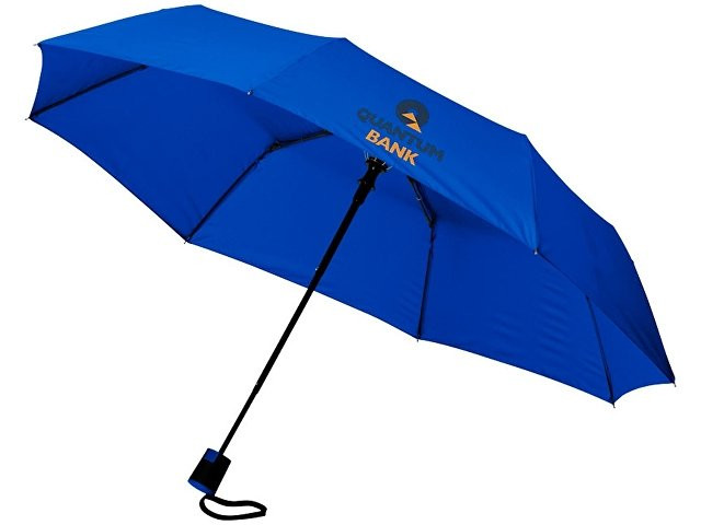 Зонт Wali трехсекционный 21" с автоматическим открытием. Зонт 21" с металлическим стержнем, спицами из стекловолокна и пластиковой ручкой с прорезиненным покрытием. В комплекте чехол. Полиэстер эпонж.