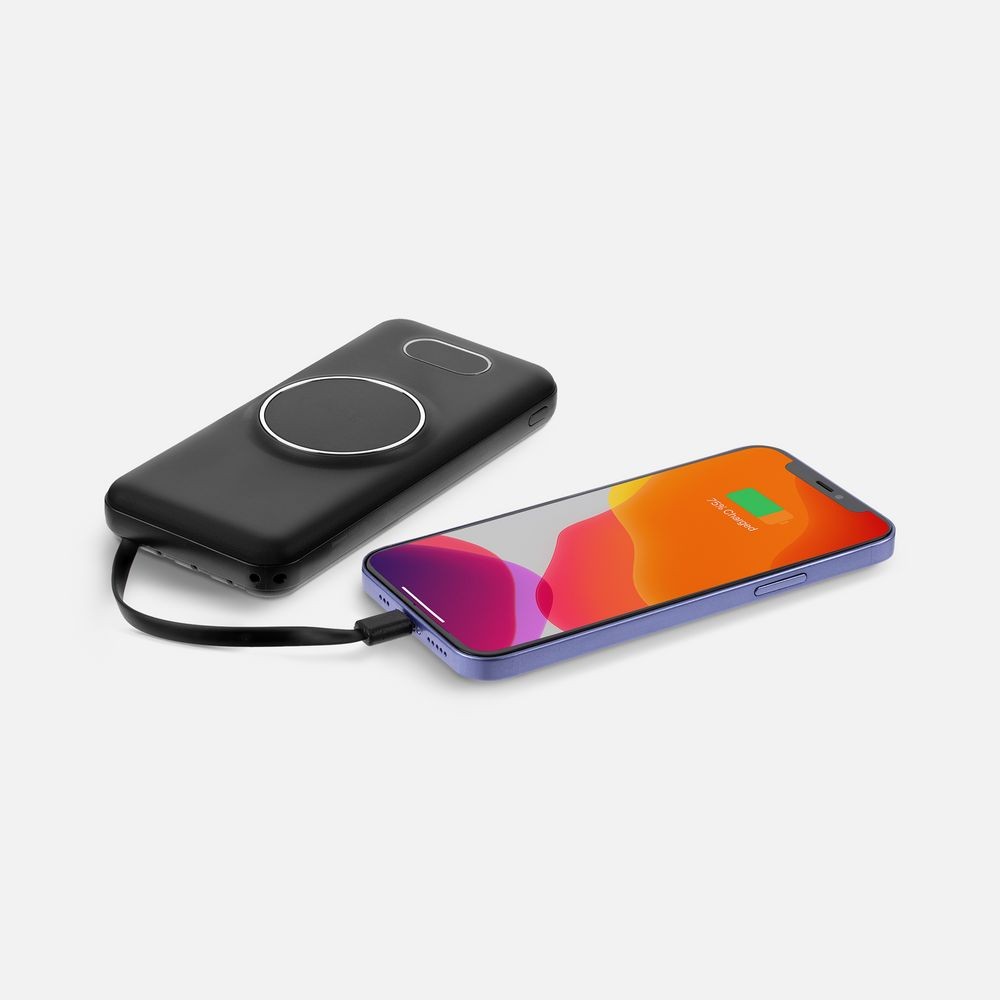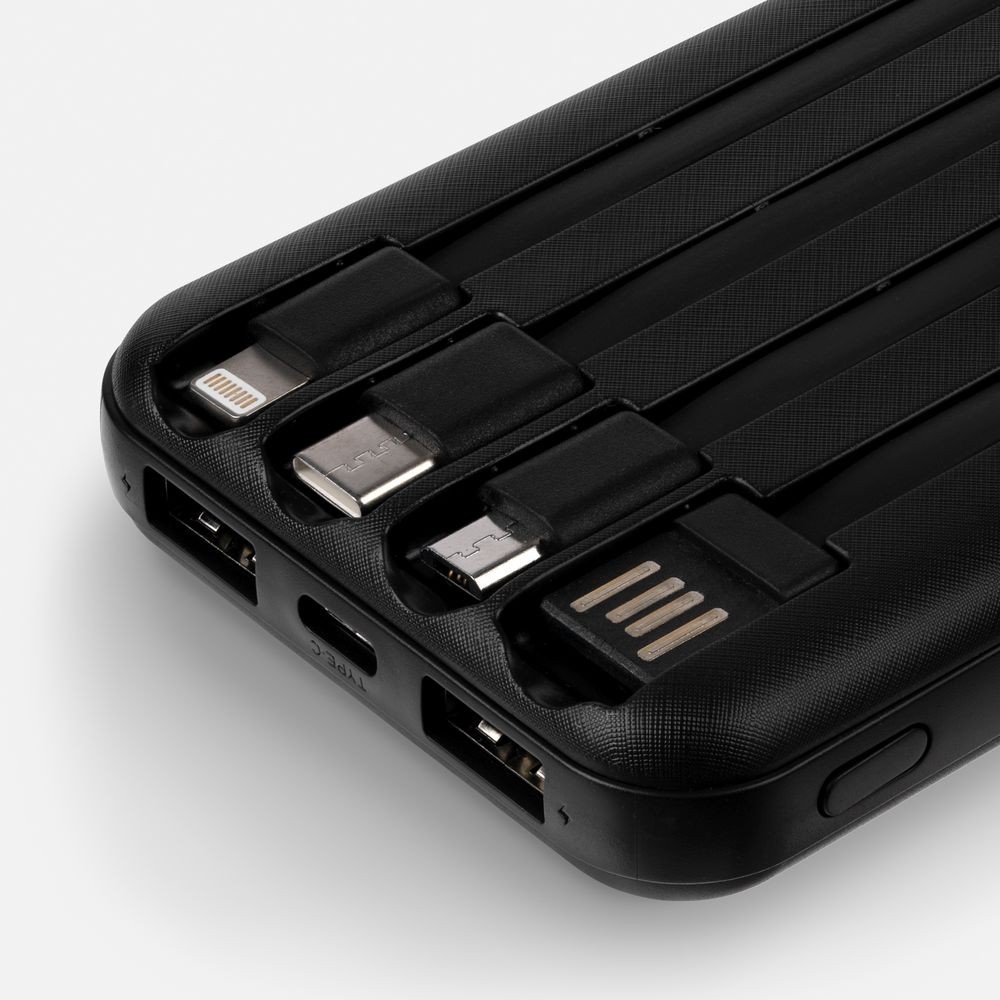 Обновленная версия аккумулятора Omni Qi 10000 мАч — теперь с покрытием софт-тач. Приятная на ощупь и визуально равномерная поверхность пластика. Интересная особенность аккумуляторов Omni — совершенно автономная конструкция: встроенные кабели позволяют заряжать как самые разные электронные устройства, так и сам аккумулятор. Если же смартфон поддерживает беспроводной заряд, то кабель вообще не нужен. Наглядный индикатор заряда в процентах.