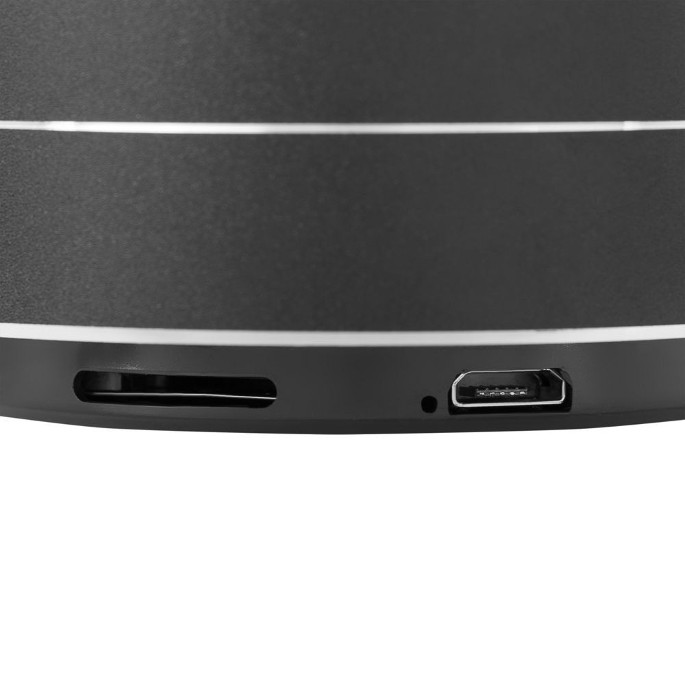Колонка в металлическом корпусе выглядит стильно и солидно. Использовать ее можно даже на открытом воздухе — у нее достаточно мощный звук. Можно использовать для переговоров по громкой связи.