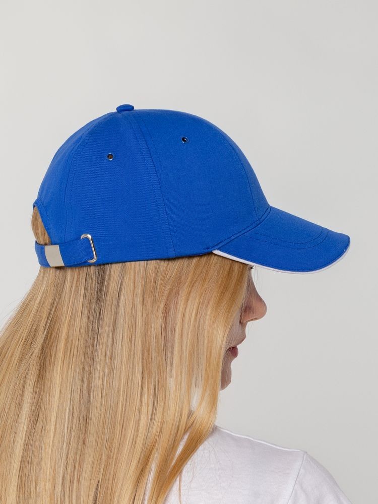 Бейсболка Canopy, ярко-синяя с белым кантом