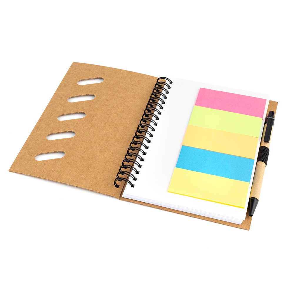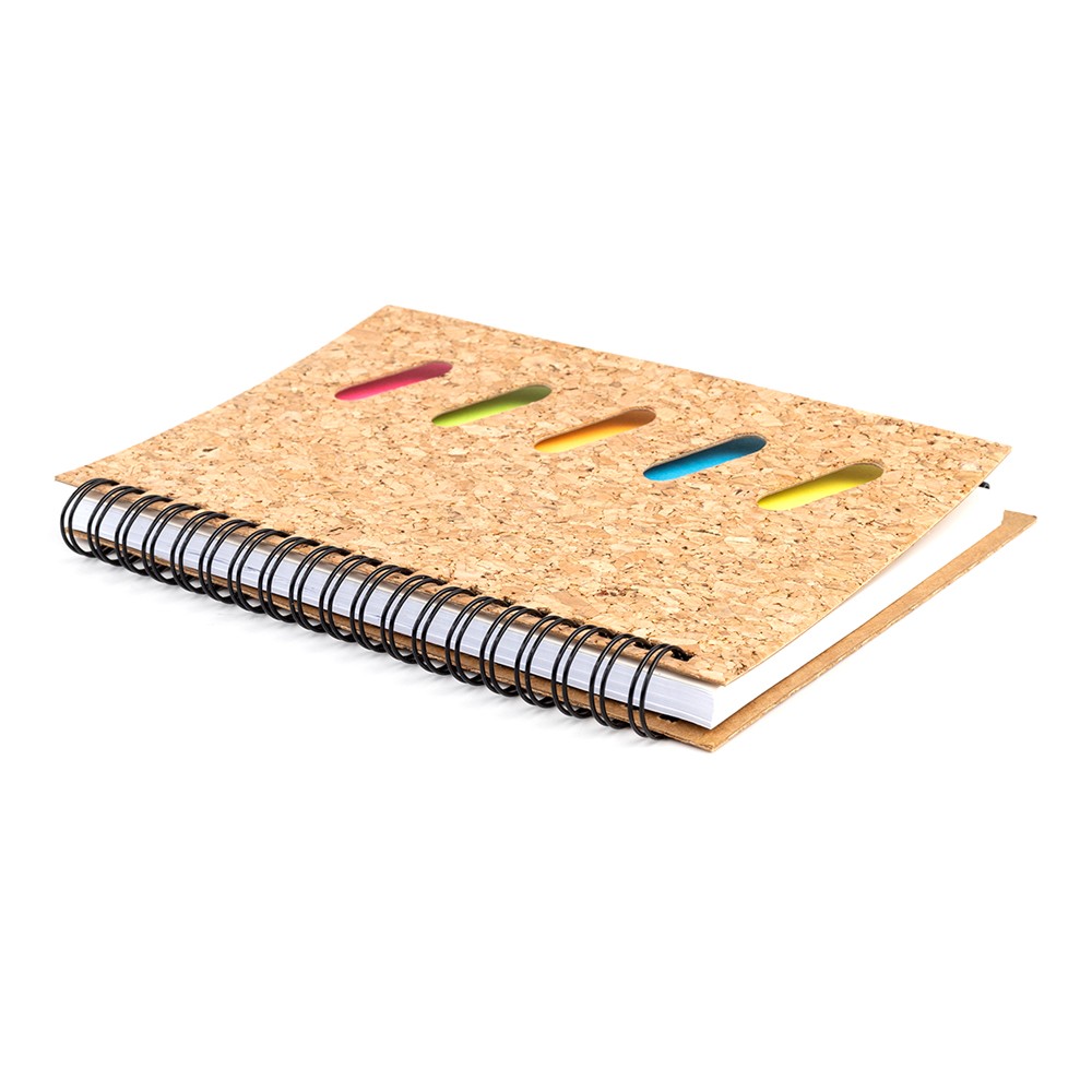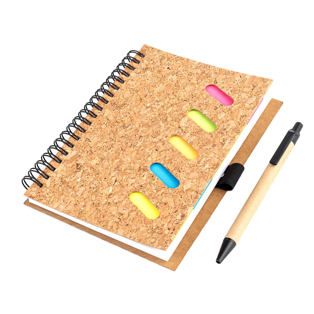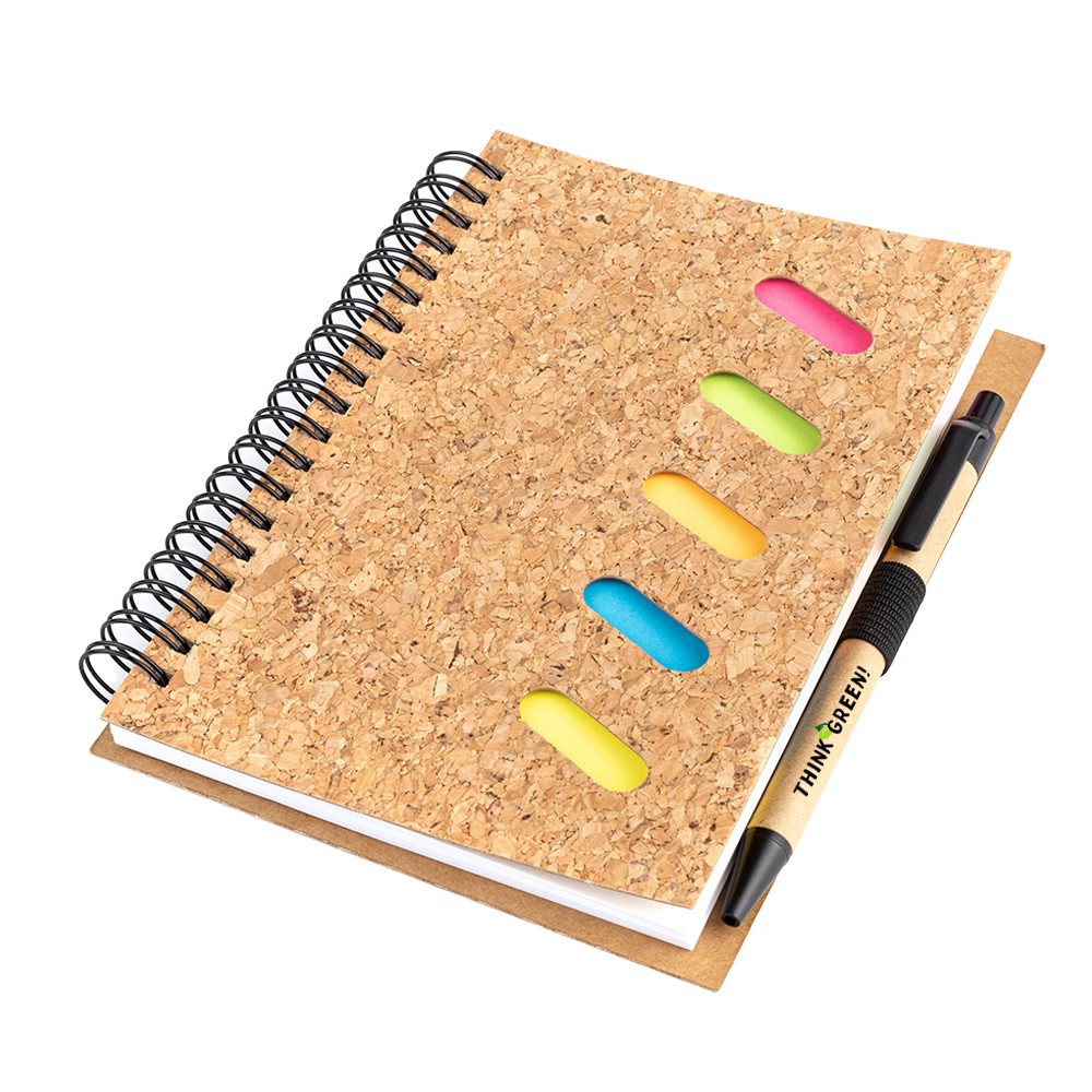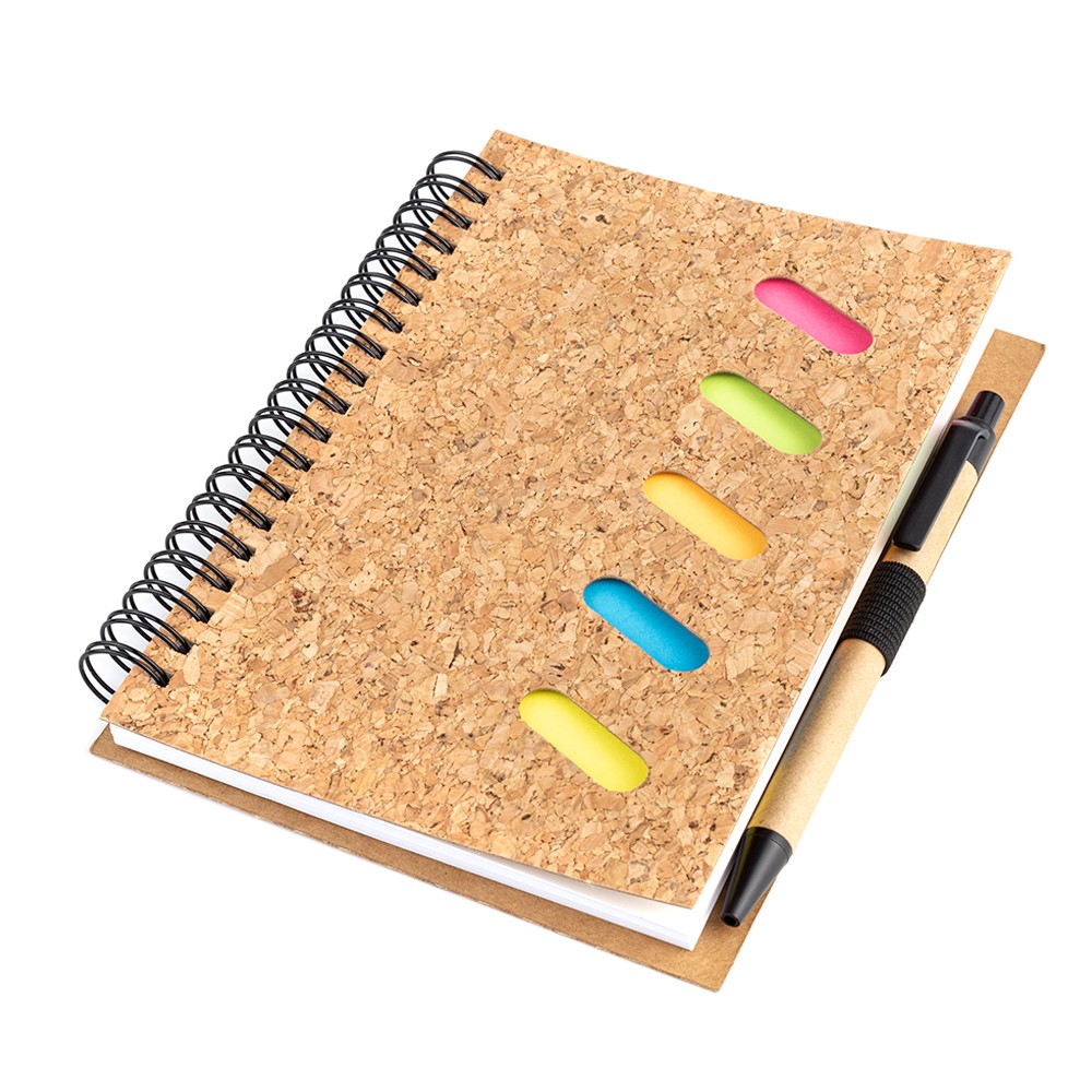 Стильный эко блокнот со стикерами и шариковой ручкой Гарольд, идеален для людей, которые записывают свои мысли от руки. Блокнот на пружине и с пробковой обложкой. Блокнот "Гарольд" включает в себя: - 70 листов, плотностью 70 г/м2. - 5 блоков стикеров (по 25 шт. каждого цвета) - шариковая ручка с синими чернилами.