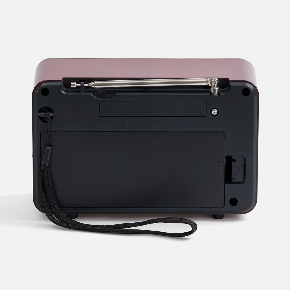 Корпус радиоприемника выполнен из качественного пластика с имитацией натурального дерева.