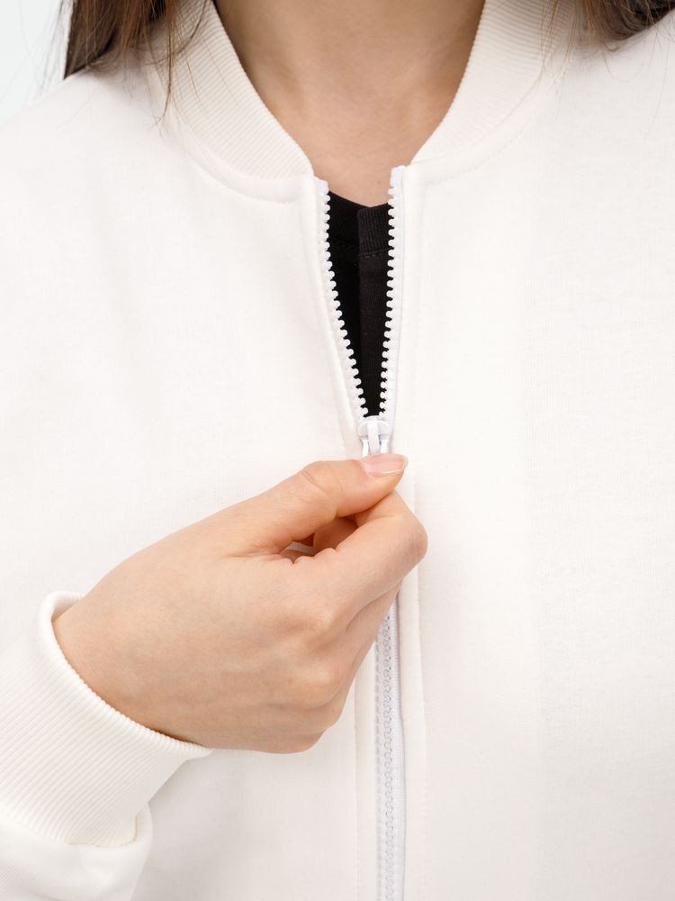 Ворот, манжеты и низ изделия отделаны резинкой 2х2 Молния в цвет изделия Два боковых кармана Внутренняя сторона без начеса Допускаются отклонения в 5% от указанных параметров по размеру и цвету