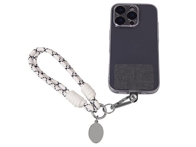 Брелок-браслет "Bohemian" c тканевым держателем для телефона, бело-черный