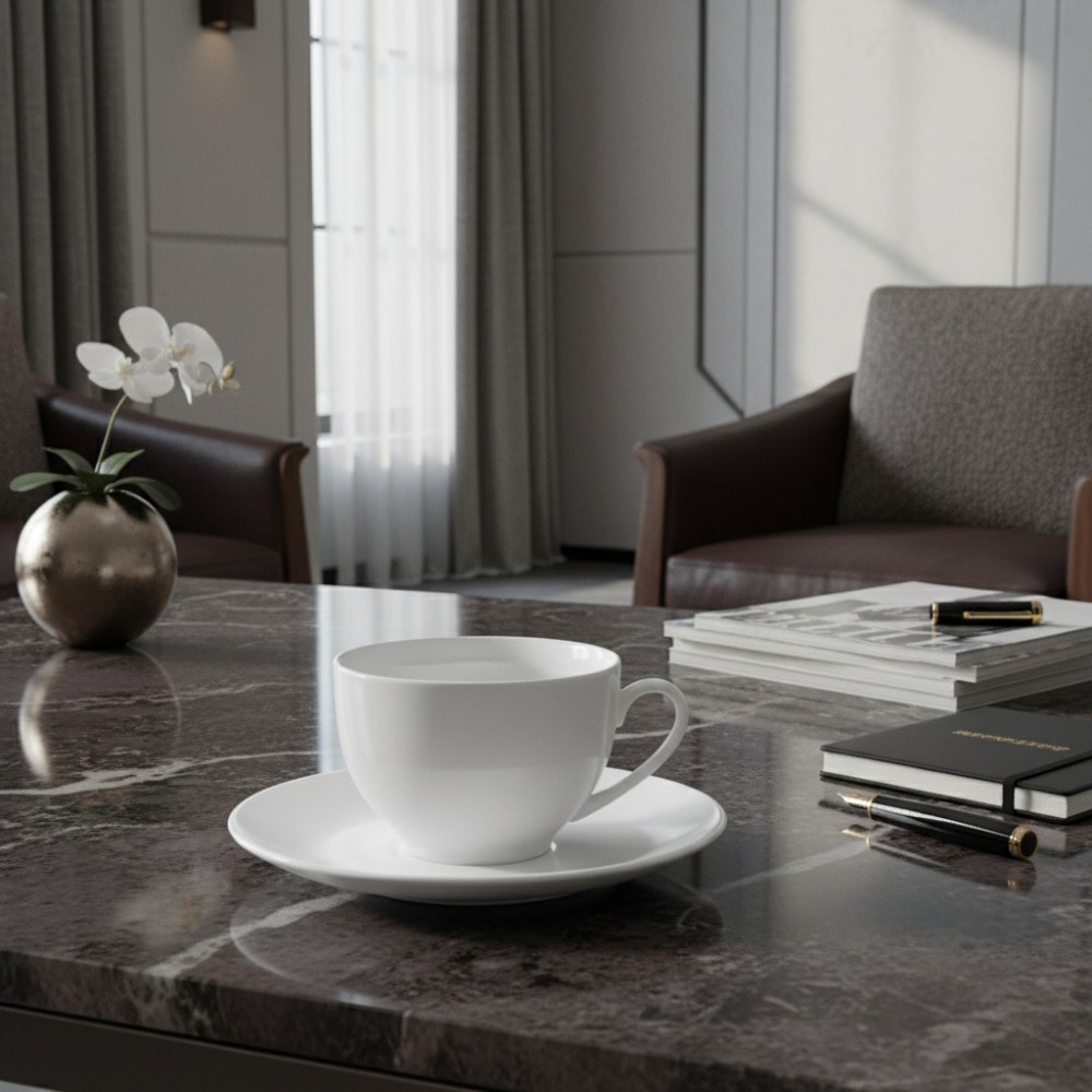Чайная пара объемом 220 мл станет прекрасным украшением ваших приятных вечеров. Пусть каждое чаепитие превращается в особенное событие, наполняя дом уютом и теплом. Размер чашки: верхний диаметр 9,7cм, нижний диаметр 4,9cм, высота 6,1 cм. Размер блюдца: длина 15,8cм, высота 1,9 cм. Поставляется в индивидульной коробке. Размер индивидуальной коробки 16,2х16х7,8 см.