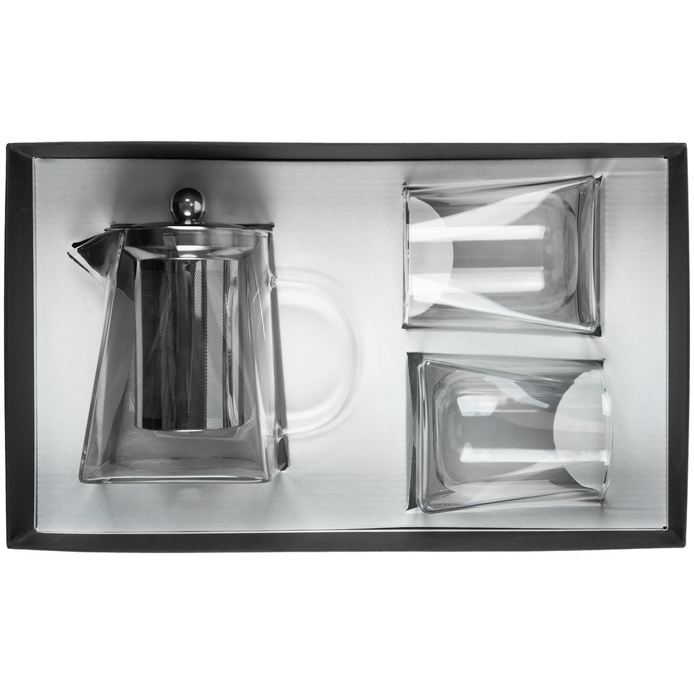 Материал: чайник, стаканы - боросиликатное стекло; крышка и сито - нержавеющая сталь; коробка - переплетный картон