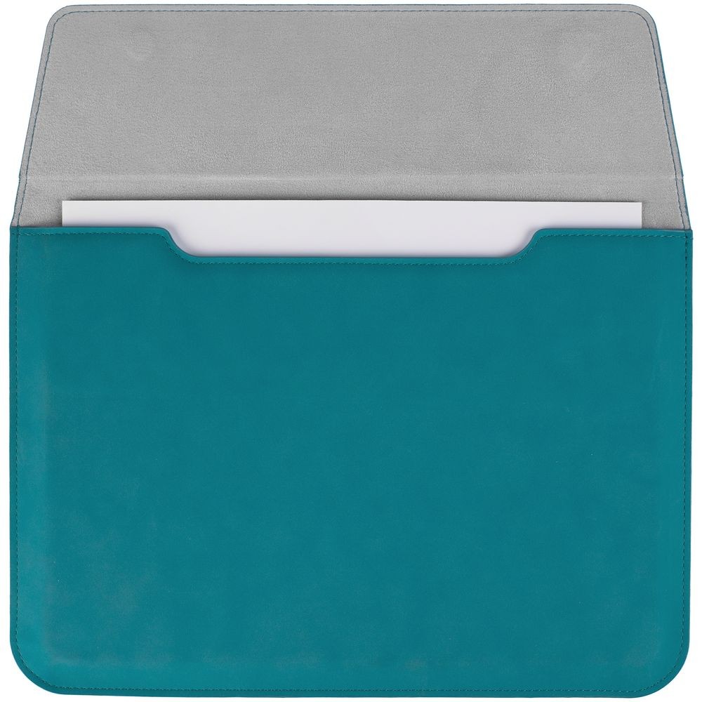 Чехол для ноутбука с диагональю до 13", выполнен из материала Nubuck, цвет морской волны II, внутри серый велюр.