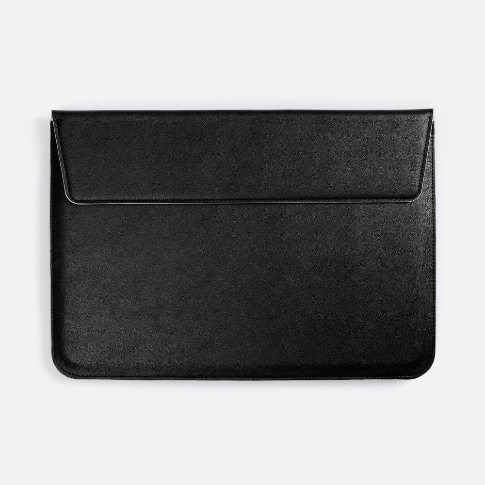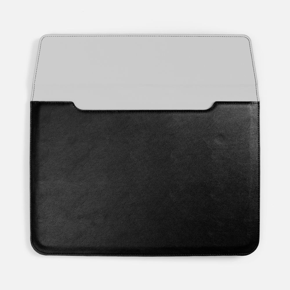 Чехол для ноутбука с диагональю до 15,6 выполнен из материала Petrus, черного цвета, дополнен окрашенным срезом края серого цвета.