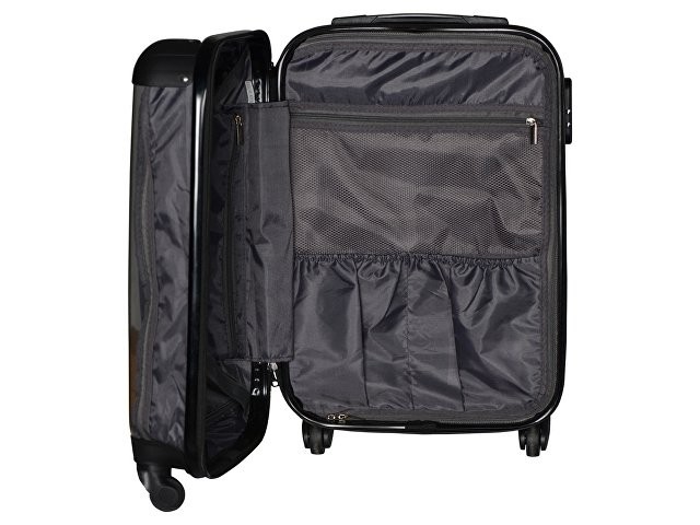 Удобен и незаменим для поездок на любые расстояния, можно брать в салон самолета благодаря компактному размеру, который был специально разработан в соответствии с требованиями большинства авиакомпаний. Одна боковая сторона из прозрачного пластика с возможность размещать бумажную вставку с вашим нанесение, 2 вместительных отделения - одно на молнии с чехлом, второе - с ремнями для фиксации одежды. На подкладке 2 внутренних кармана на молнии для хранения мелочей. - 4 устойчивых колеса вращаются на 360° - Прочный корпус из легкого поликарбоната - Встроенный кодовый замок для большей безопасности - Телескопическая ручка - Защитные накладки на углы против повреждений поверхности - 2 вместительных отделения - Объем 37л