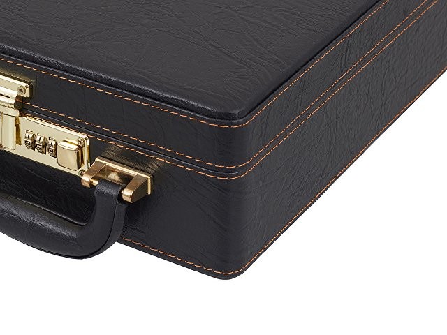 Премиальный дипломат с кодовым замком – отличный выбор для ценных подарков. Благородная кожа и аккуратная строчка создают впечатление дорогого аксессуара, а защитный механизм гарантирует сохранность содержимого.