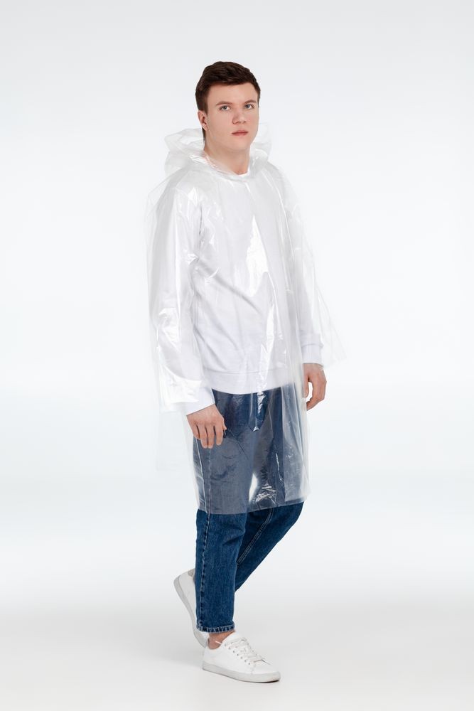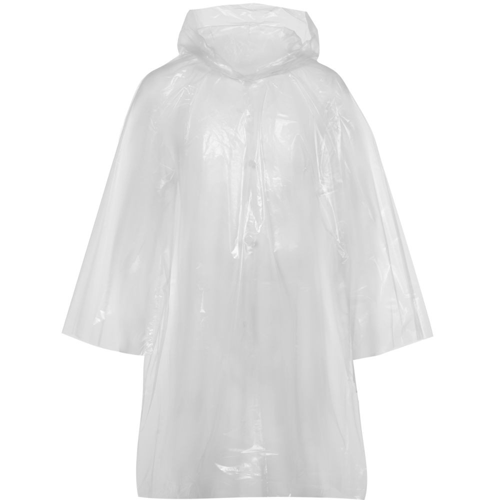 Компактный дождевик по достоинству оценят посетители фестивалей под открытым небом, парадов и народных гуляний. Даже если дождь не прольется, дождевик останется в сумке «на всякий случай». Дождевик-плащ с капюшоном и длинными рукавами из полиэтилена высокого давления (ПВД).