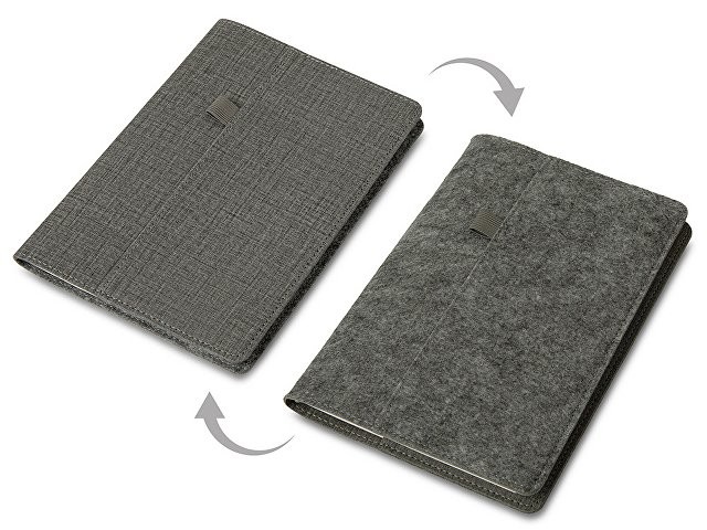Это портфолио адаптируется под ваш стиль и настроение. Одна сторона — серая экокожа, другая — уютный фетр из переработанных материалов. С обеих сторон вы найдёте карманы для мелочей и петли для резинки. Внутри — сменный блок из 80 листов кремовой бумаги с ляссе, что делает его удобным и практичным.