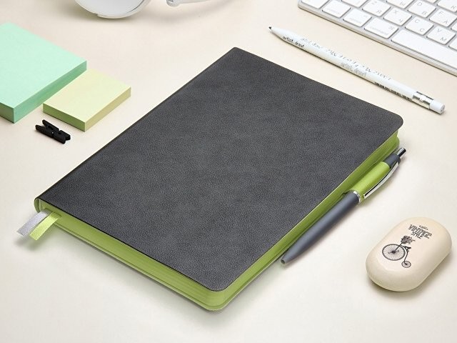 Ежедневник А5 датированный "Boston" 2027, серый с салатовым обрезом