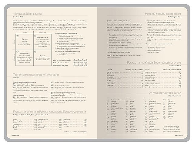 Элегантный датированный ежедневник "Megapolis Color" от Bruno Visconti идеально подходит для организации рабочего дня и ведения важных записей. Обложка из искусственной кожи с приятным на ощупь покрытием Soft Touch и обрез в тон создают гармоничный образ. Внутри – блок из бежевой бумаги плотностью 70 г/кв.м с разделами для планирования, календарем на 2026-2027 год и полезной справочной информацией. Для удобства навигации предусмотрена закладка-ляссе шириной 7 мм в цвет обложки.