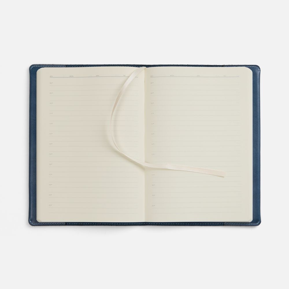 Ежедневник в мягкой суперобложке из натуральной кожи. Дополнен ляссе кремового цвета. Упакован в индивидуальную коробку.