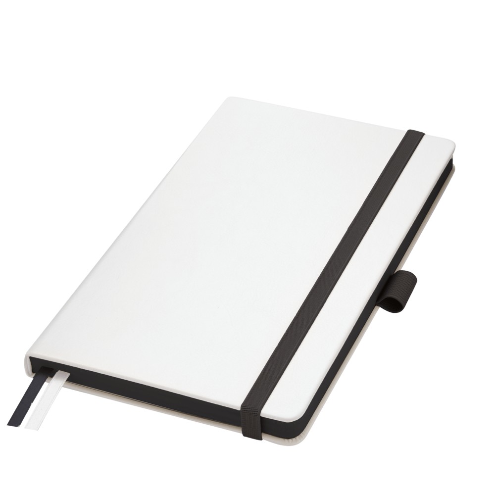Недатированный ежедневник выполнен в жесткой обложке из искусственной кожи со скругленными уголками. Переплетный материал гладкий, с легкой естественной паутинкой морщин, имеет полуглянцевый блеск. Цвет – чистый белый. Черные матовые форзац и нахзац, а также черный срез блока создают оригинальный динамичный цветовой ансамбль и подчеркивают белизну обложки. Страницы светло-кремового цвета, из гладкого офсета, слегка шелковистые, со скругленными уголками. Добавляют изделию мягкую комфортную теплоту. Двойное атласное ляссе составлено из черной и белой лент. Каждая шириной 6 мм, имеет легкий блеск. Вертикальная фиксирующая резинка прочная, надежная и удобная, в тон срезу. Есть петелька для ручки в тон резинки. Карман на заднем форзаце.