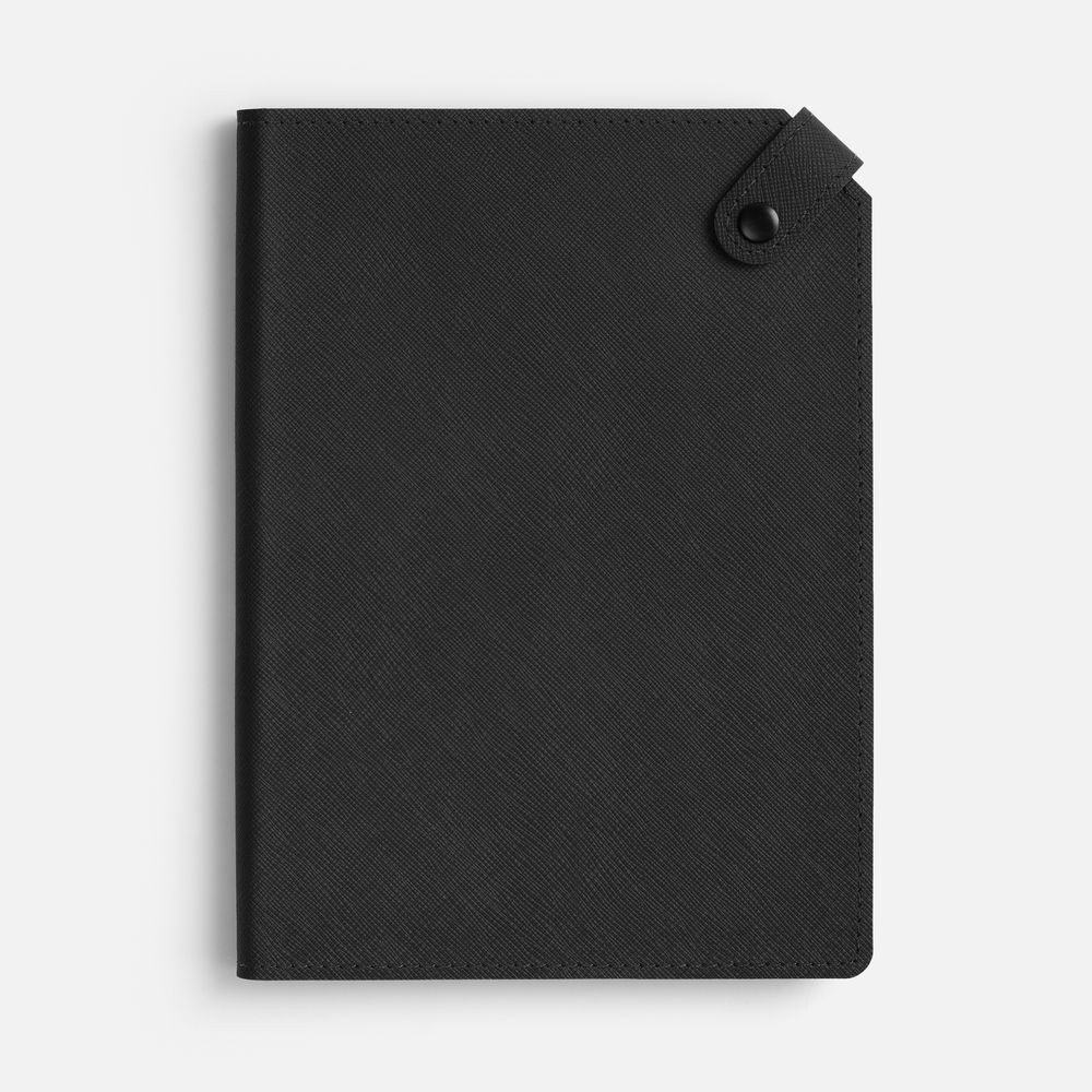Ежедневник с гибкой обложкой, выполнен из материала Espresso, дополнен ляссе черного цвета и хлястиком на кнопке.