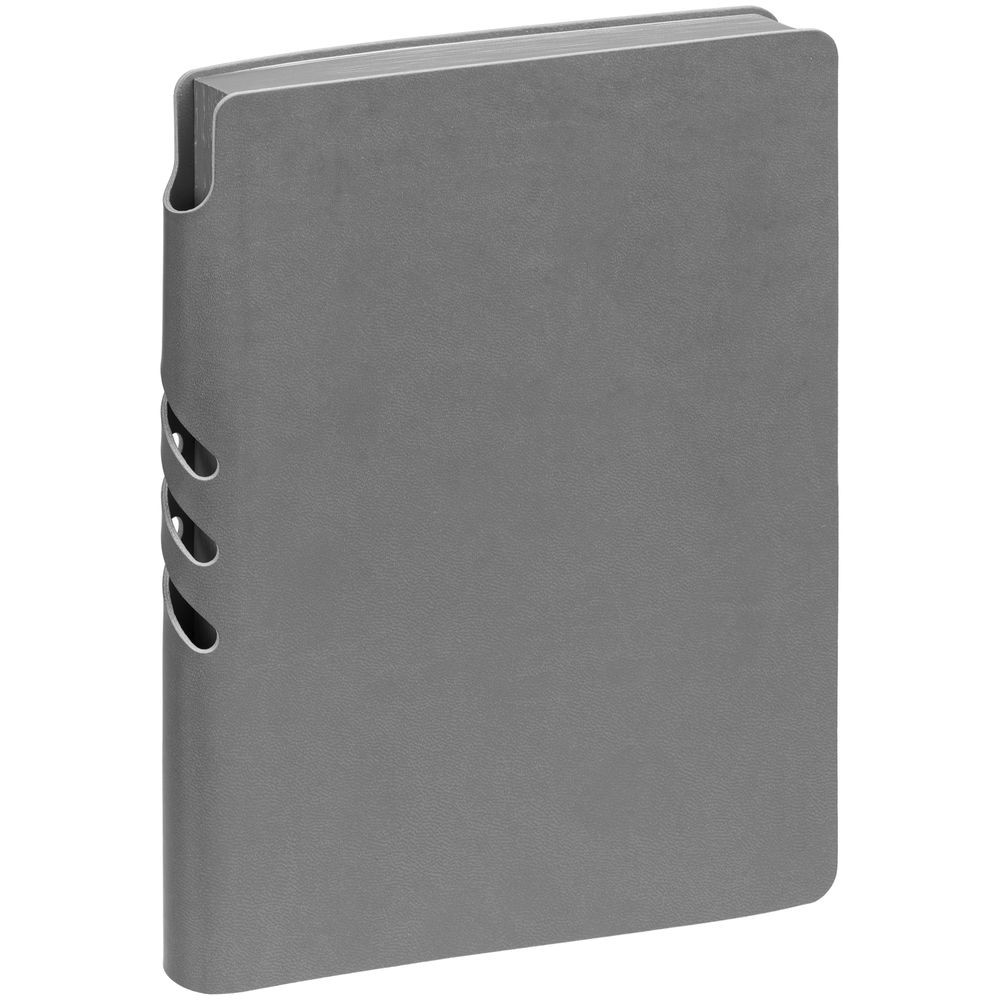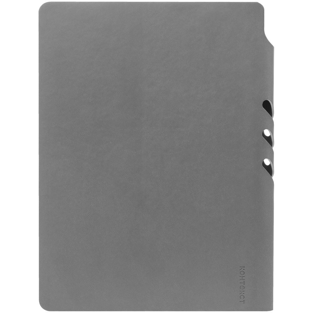 Гибкая обложка ежедневника выполнена из материала Latte, серый СС. Внутри корешка — специальное место для крепления ручки размером до 15х0,9 см.